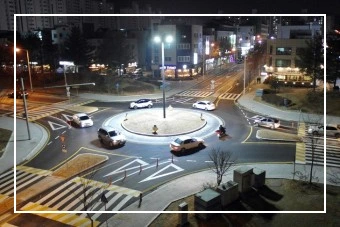 회전교차로는 신호등이 없어 전기요금 등 유지비가 적게 들고, 불필요한 신호대기가 없어서 차량의 흐름이 원활해 교통량 체증이 없다는 장점이 있다. 신호대기가 없어 자동차의 공회전 감소로 에너지도 절약뿐 아니라 친환경적인 면에서 좋은 것 같다. 입구에 있는 회전교차로의 높은 대형 가로등은 밤에 멀리 오면서 보면 멋있다. 회전 교차로 내에 원형 녹지는 아파트 단지로 들어오면서 ‘오늘도 무사히’를 느끼게 해 준다.