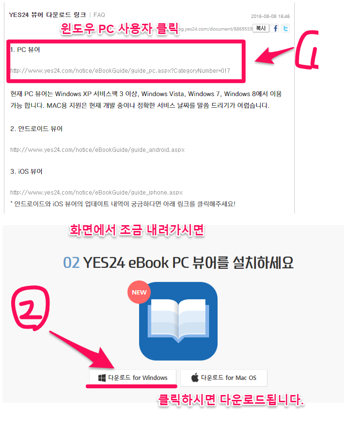1. PC 뷰어http://www.yes24.com/notice/eBookGuide/guide_pc.aspx?CategoryNumber=017현재 PC 뷰어는 Windows XP 서비스팩 3 이상, Windows Vista, Windows 7,...