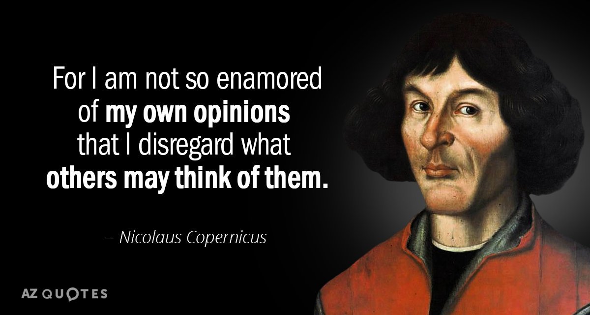 "우리가 아는 것을 우리가 알고 있음을 알고, 우리가 모르는 것을 우리가 모른다는 사실을 아는 것, 이것이 참된 지식이다." 니콜라우스 코페르니쿠스