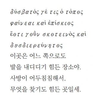 왜 희랍어 공부인가? 죽은 언어가 죽어가는 주인공의 현실과 같아서, 그 죽은 언어를 살려보려는 노력이 소멸하는 자신을 살리려는 내면의 싸움이 아닐까.