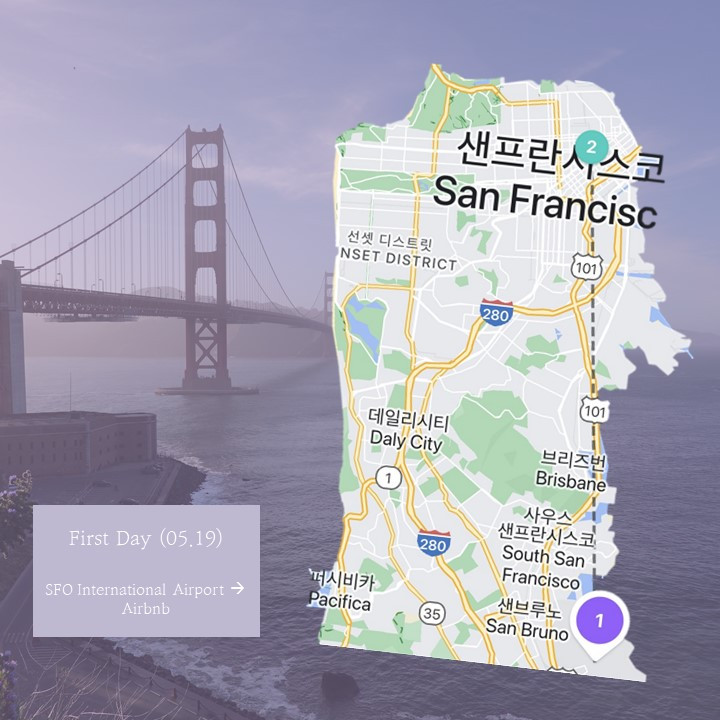 엄마가 하와이로 놀러 와서 일주일 편하게 놀러 다니다가, 하와이에서 친해진 한국인 친구와 미국 본토로 여행을 떠났다. 우리가 제일 먼저 간 곳은 샌프란시스코였다. 5박 6일동안 머무르기로 해 5월 19일부터 5월 24일까지 있었다. 다른 여행지와는 다르게 샌프란시스코는 친구와 학교 도서관에서 스터디룸을 잡아두고 5시간 동안 열심히 계획을 한 곳이라 가장 크게 기대가 된 곳이었다.