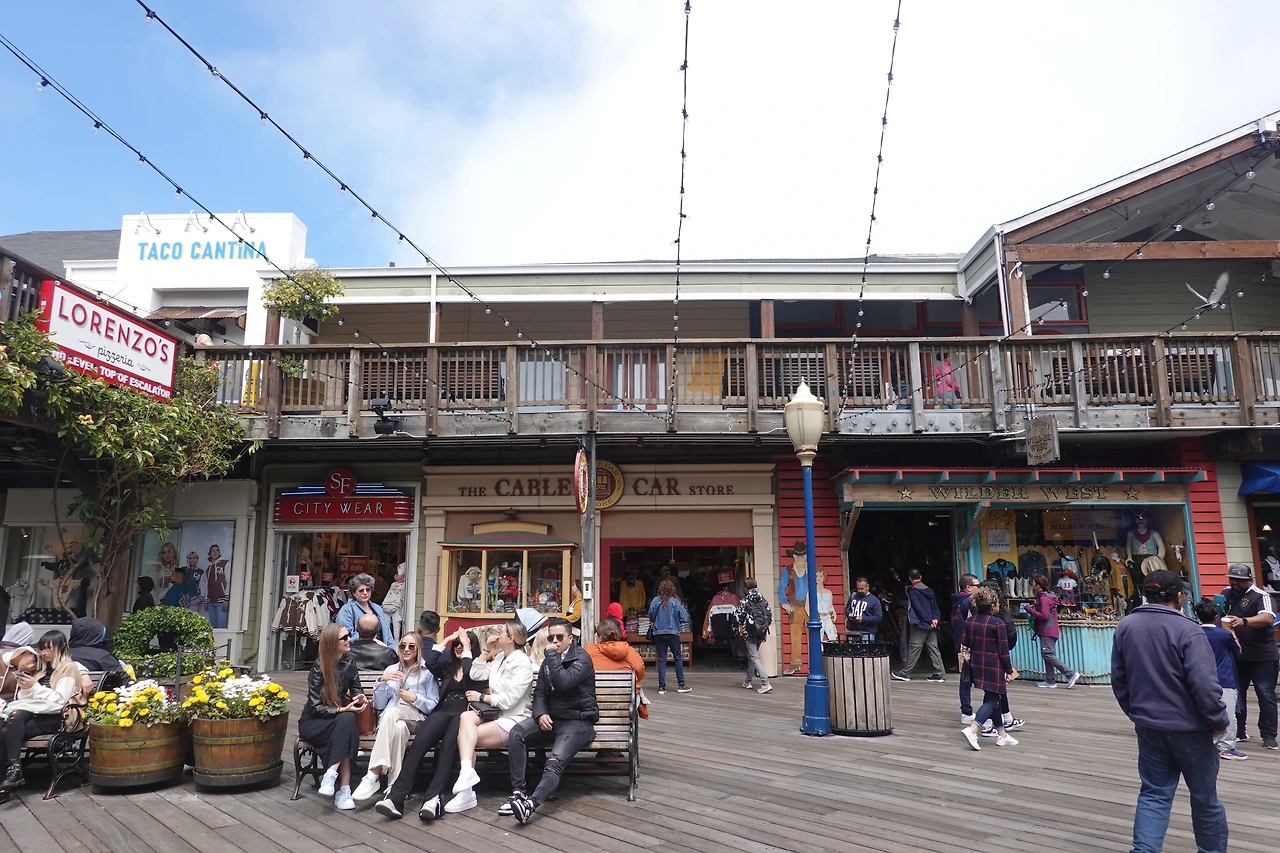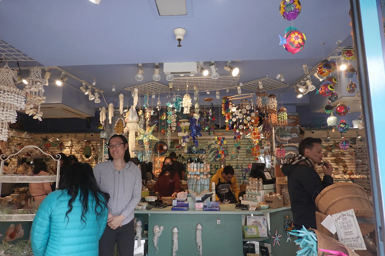 피어 39 내부에는 조개로 된 장신구를 파는 기념품점, 냉장고 자석만 파는 기념품점 등 각종 사랑스러운 상점들이 보인다.