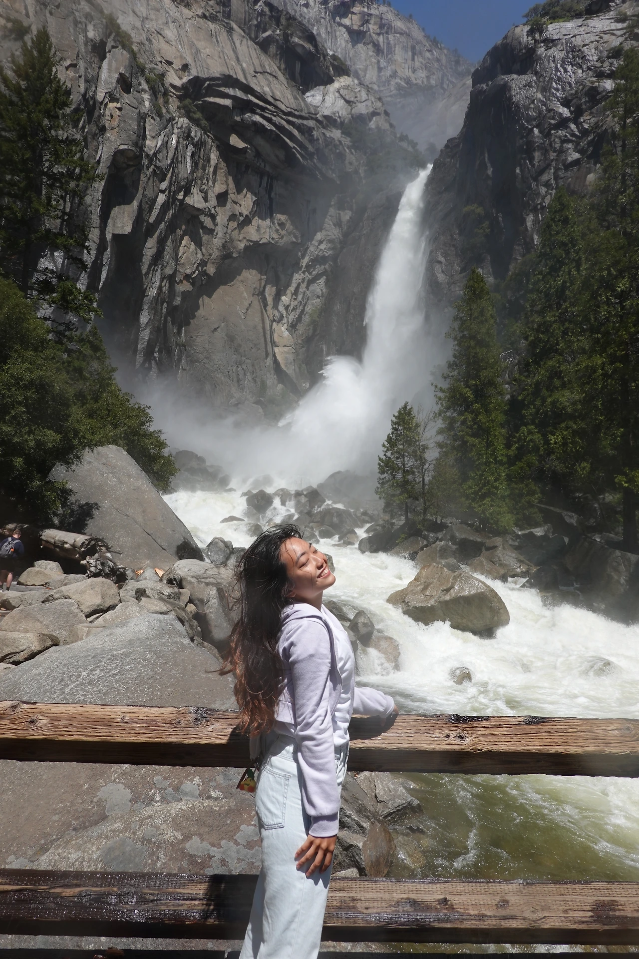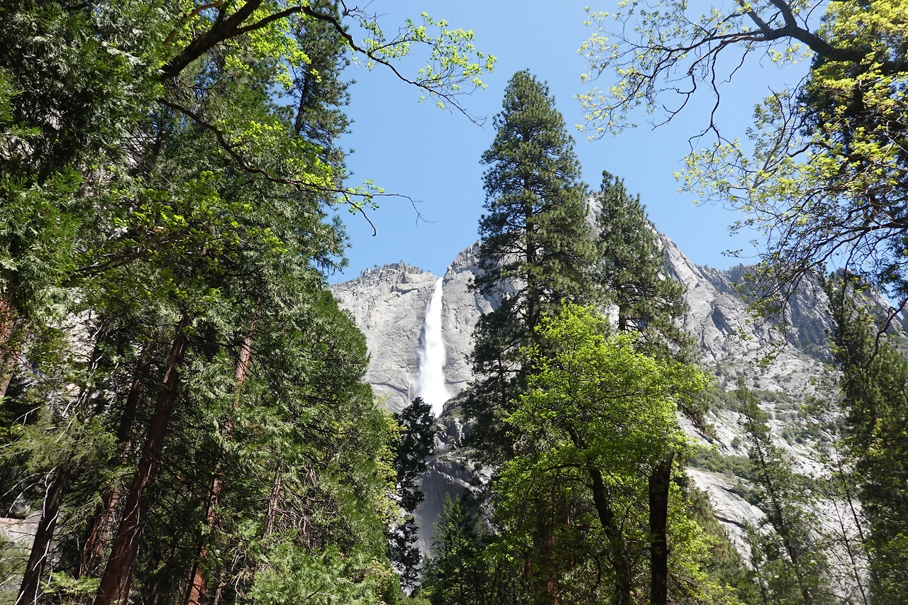 조금만 걸으면 요세미티 폭포의 바로 앞으로 갈 수 있다.