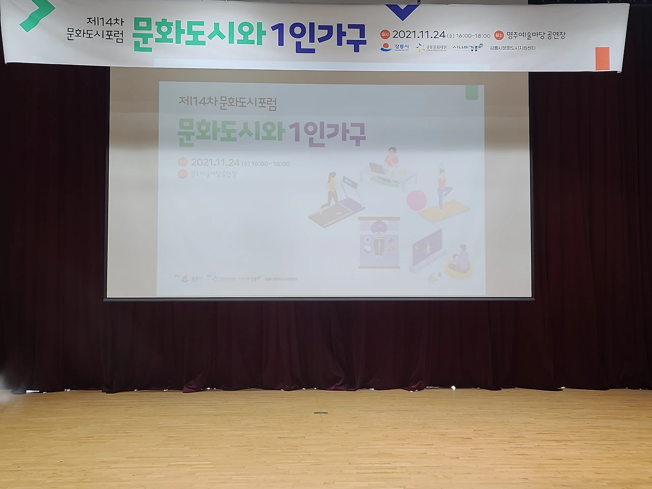 강릉시가 주최하고 (재)강릉문화재단 산하 강릉시문화도시지원센터에서 주관하는 제14차 강릉 문화도시 포럼이 '문화도시와 1인 가구'라는 주제로 24일 오후 4시 명주 예술마당 공연장에서 열렸다.
