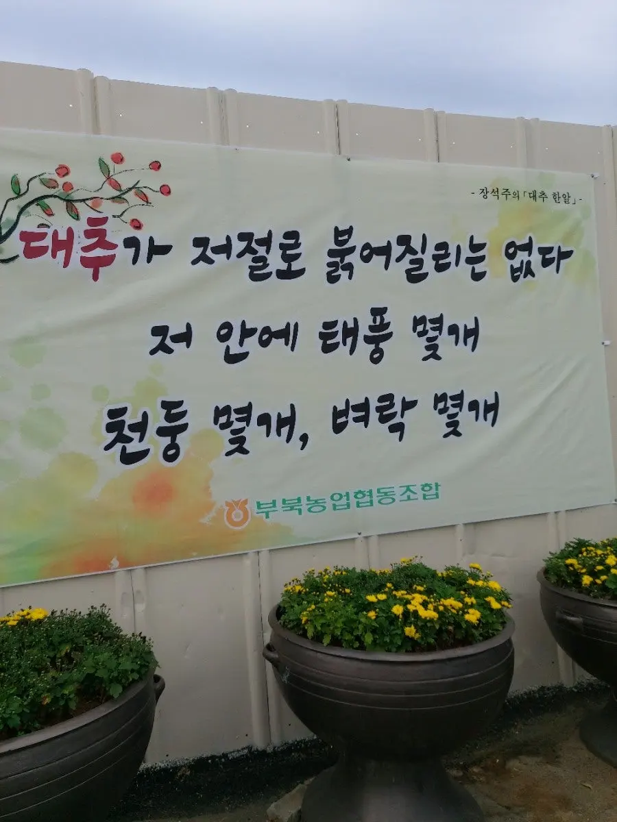 그날 아침산책길이었다. 마을 진입로에 농협에서 붙인 현수막이다. 보는 순간, 감동이었다. 시골동네가 사랑스러워졌다. 어쩜, 이 동네에도 시(詩)를 좋아하는 사람들이 있나 보다. 평소에 집안에 굴러다니던 열매 · 대수롭지 않게 생각한 대추를 통해 우리네 인생길을 다시금 생각하게 하는 시(詩)인의 마음.
