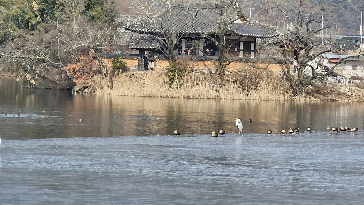 날씨가 너무 좋다. 이런 기온이면, 많은 일을 할 수가 있다. 마당에 나가 이끼정원에 분무를 시작한다. 흠뻑 주니 초록초록 기지재를 켜고 살아난다. 견주의 움직임만 예리한 눈빛으로 관찰하는 반려견. 산책준비를 눈치채고 뛰고 난리다. 가까운 [위양지]를 나간다. 위양지의 호수물이 반쯤 얼어있다. 수면과 얼음판의 경계선에 새들이 옹기종기 모여 물을 털고 있는 듯. 카메라로 찍고 또 찍고.