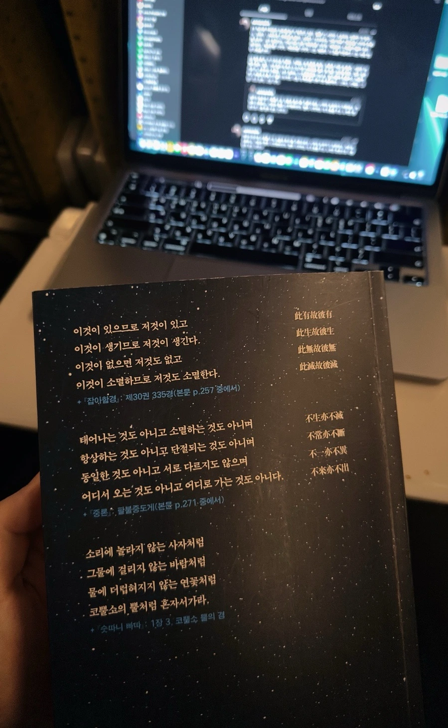 아래에는 <양자역학과 불교철학은 처음이지?>라는 책에서 와닿는 구절들을 옮겨 놓았다. 이 책은 총 세 장으로 이루어져 있다. 1장에는 양자역학의 기초, 2장에는 불교철학의 기초, 3장에는 양자역학과 불교철학의 통섭에 대해 다룬다. 솔직히 1장과 2장은 읽지 않고 3장만 읽었다. 1장은 이미 알고 있는 내용이기도 했고, 글로 읽으니 너무 지루했다. 개념적인 건 재미 요소가 첨부된 유튜브 콘텐츠를 시청하면서 학습하는 게 재미도 있고 학습 효과도 뛰어날 것 같다. (침착맨 유튜브에 궤도가 출연해 양자역학에 대해 다룬 영상 정말 쉽고 재밌게 봤다. 적극 추천.)