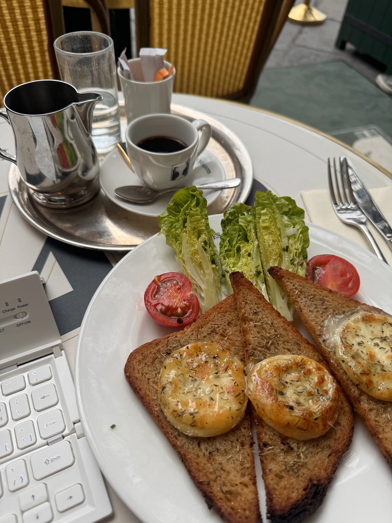 테라스 자리에 앉아 커피와 염소치즈 토스트를 주문했다. 비싼 가격에 비해 단출한 구성의 음식이 나왔다. 반 쪽짜리 토스트 세 조각과 약간의 채소가 나왔는데, 훌륭한 맛은 아니었지만 작은 배를 채우기에는 충분했다. 음식을 천천히 먹으며 사람들을 구경했다. 거리를 걸어가는 사람들, 그리고 주변의 테이블에 오가는 사람들. 숙소가 있는 동네와 달리 북적이는 거리는 오랜만이라 적응이 되지 않았다. 이곳의 사람들은 대부분 관광객임이 틀림없었다.