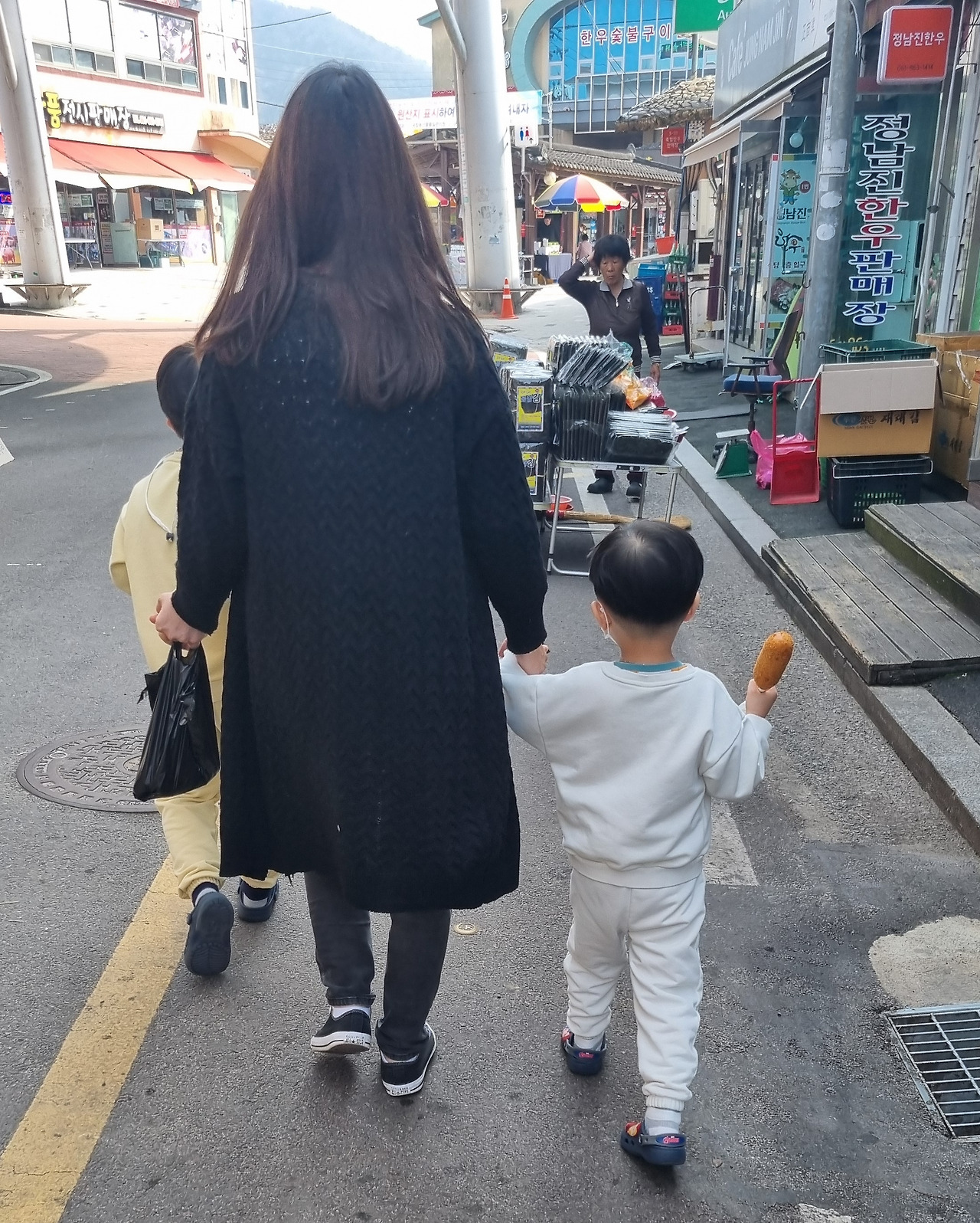 사실은 장흥에 내려오는 길에도 내 뇌 구조는 오로지 핫도그란 단어로 가득 찼었다. ‘시장=핫도그 파는 곳’이란 인지 구조가 마치 교리처럼 각인돼 있었기 때문에 핫도그를 기필코 사 먹겠다고 다짐했지만, 오늘은 나를 위한 핫도그를 튀기고 싶진 않았다. 봉지 가득 담겨 있는 부활절 불고기용 소고기와 김이 모락모락 나는 핫도그를 애지중지 붙잡고 세상 행복한 표정을 짓고 있는 둘째 아들 녀석을 보니 이미 내 마음의 배는 불룩 불러온 상태였기 때문이다.