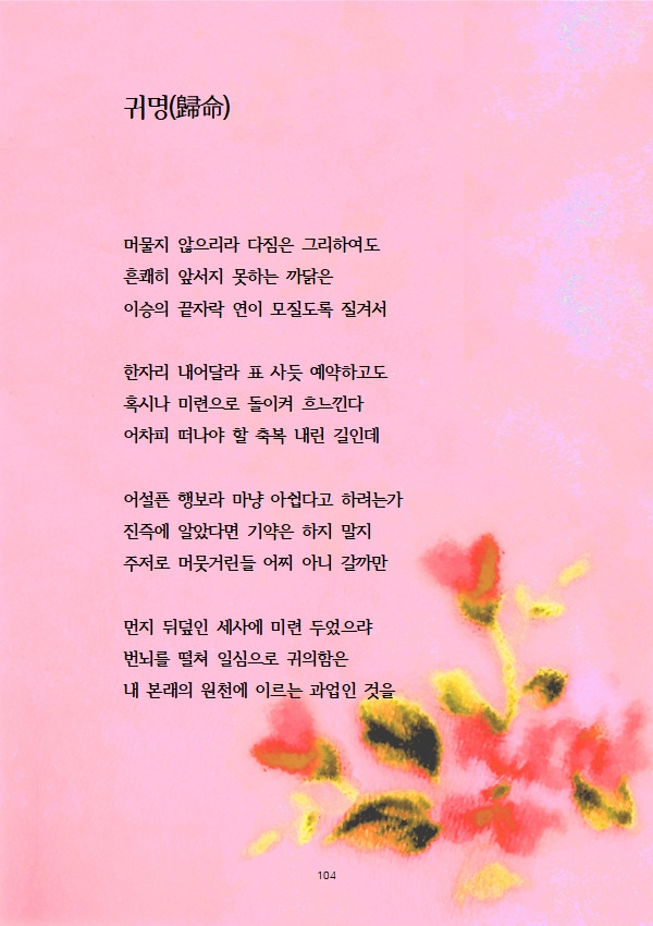 [ 교실에는/실망이어요/처신/분화(粉畵)/귀명(歸命)/불통(不通) ]