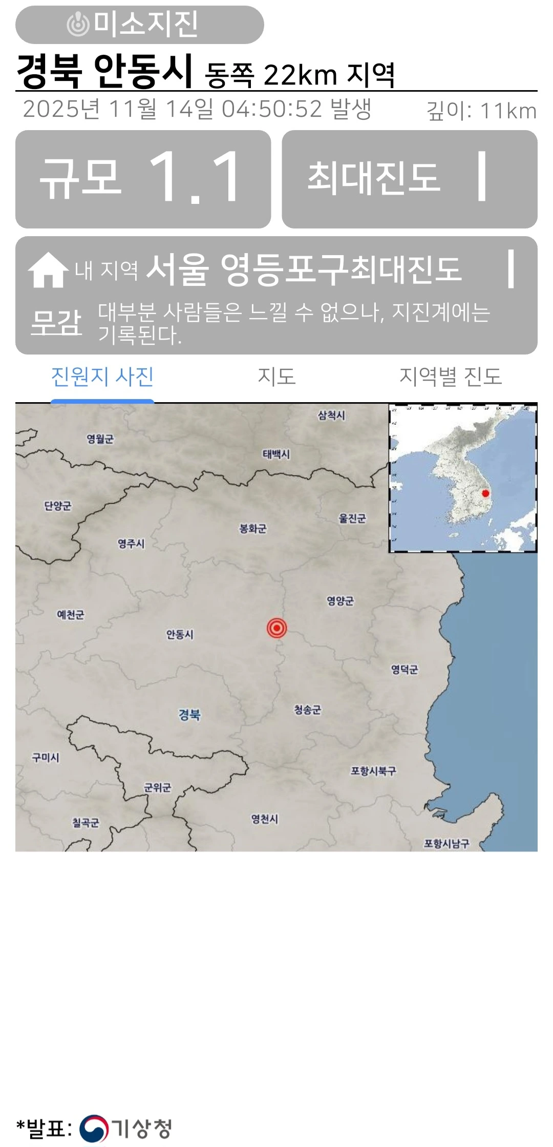 우리가 잠든 새벽 4시 50분, 안동의 땅이 잠시 숨을 쉬었듯, 이 미소지진들은 땅이 살아있음을 알리는 겸손한 신호입니다.