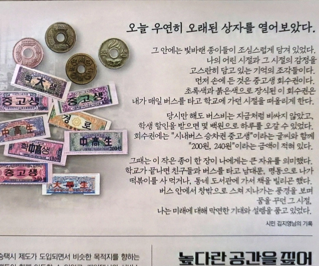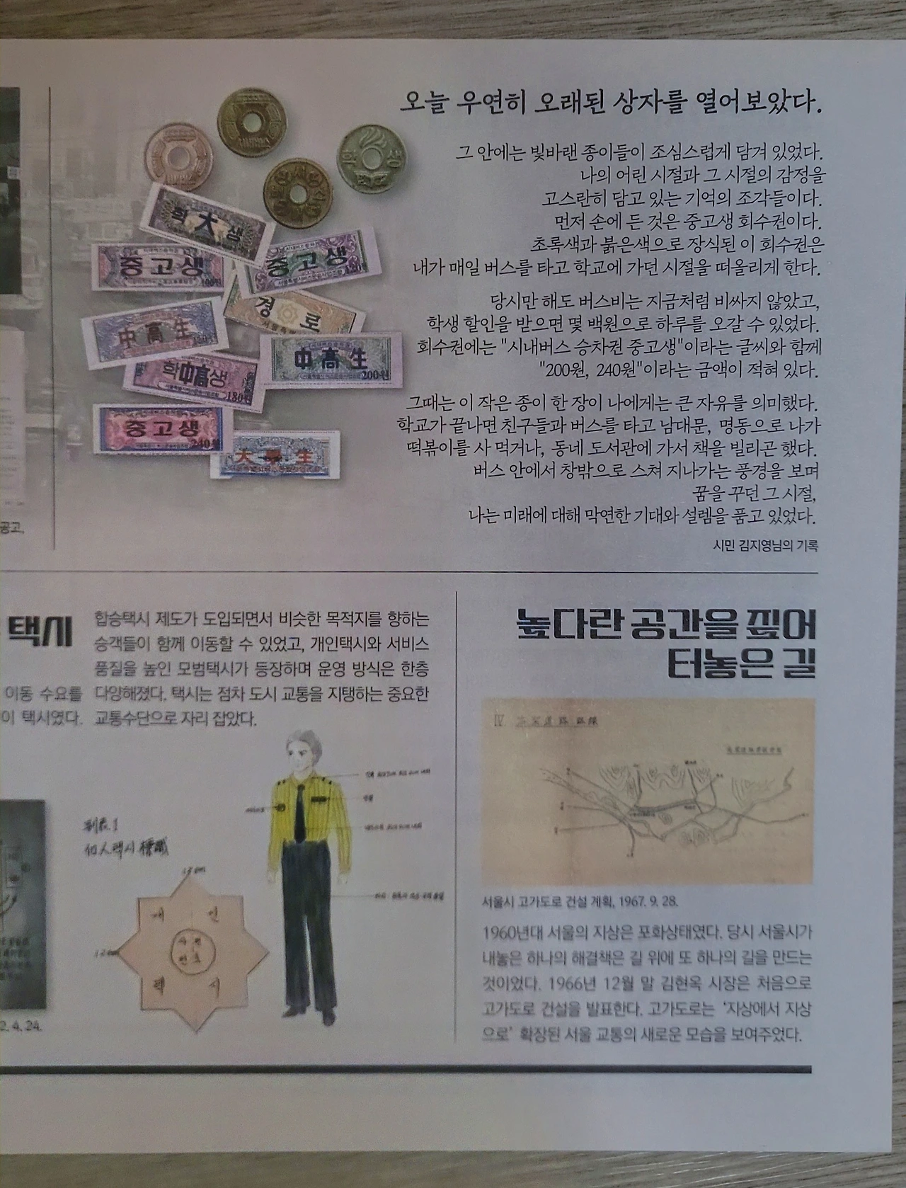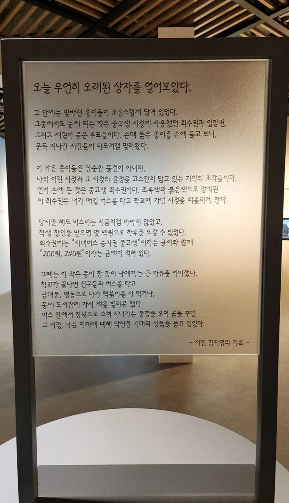 제가 쓴 버스 회수권 이야기가 서울의 교통사와 함께 전시된다는 것은, 평범했던 한 개인의 경험이 '서울 시민'이라는 집단의 정체성을 이루는 중요한 일부가 되었음을 의미합니다.