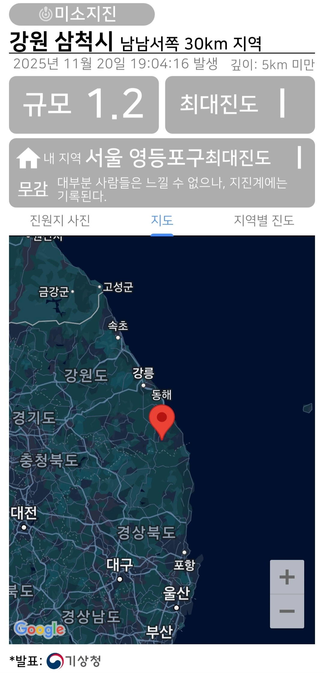 삼척: 동해안의 고요함을 자랑하는 삼척 인근 해역 역시 크고 작은 지진이 꾸준히 보고되는 지역입니다.