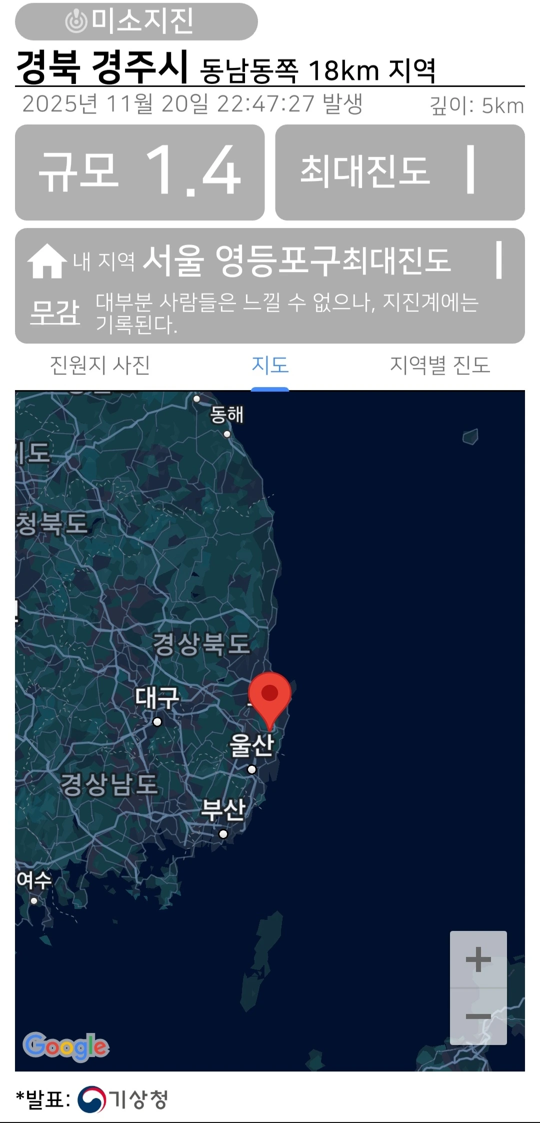 특히 경주와 포항 일대는 양산단층대와 울산단층대가 지나가는 곳으로, 이 작은 미소지진들은 땅속 깊은 곳에서 여전히 응력이 해소되고 있음을 보여주는 미세한 후유증일 수도 있습니다.