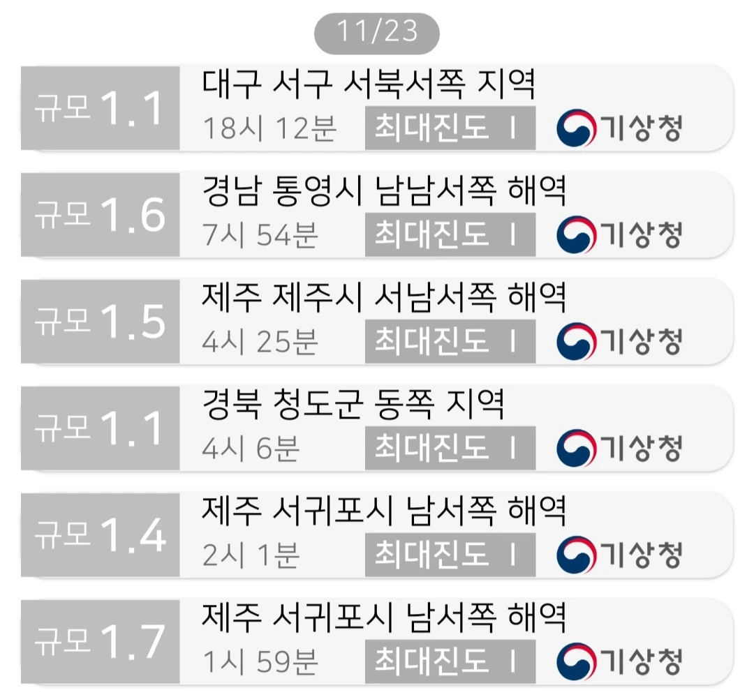 #미소지진 #제주지진 #지진기록 #자연의경고 #고요한진동 #대구지진 #청도지진 #통영지진