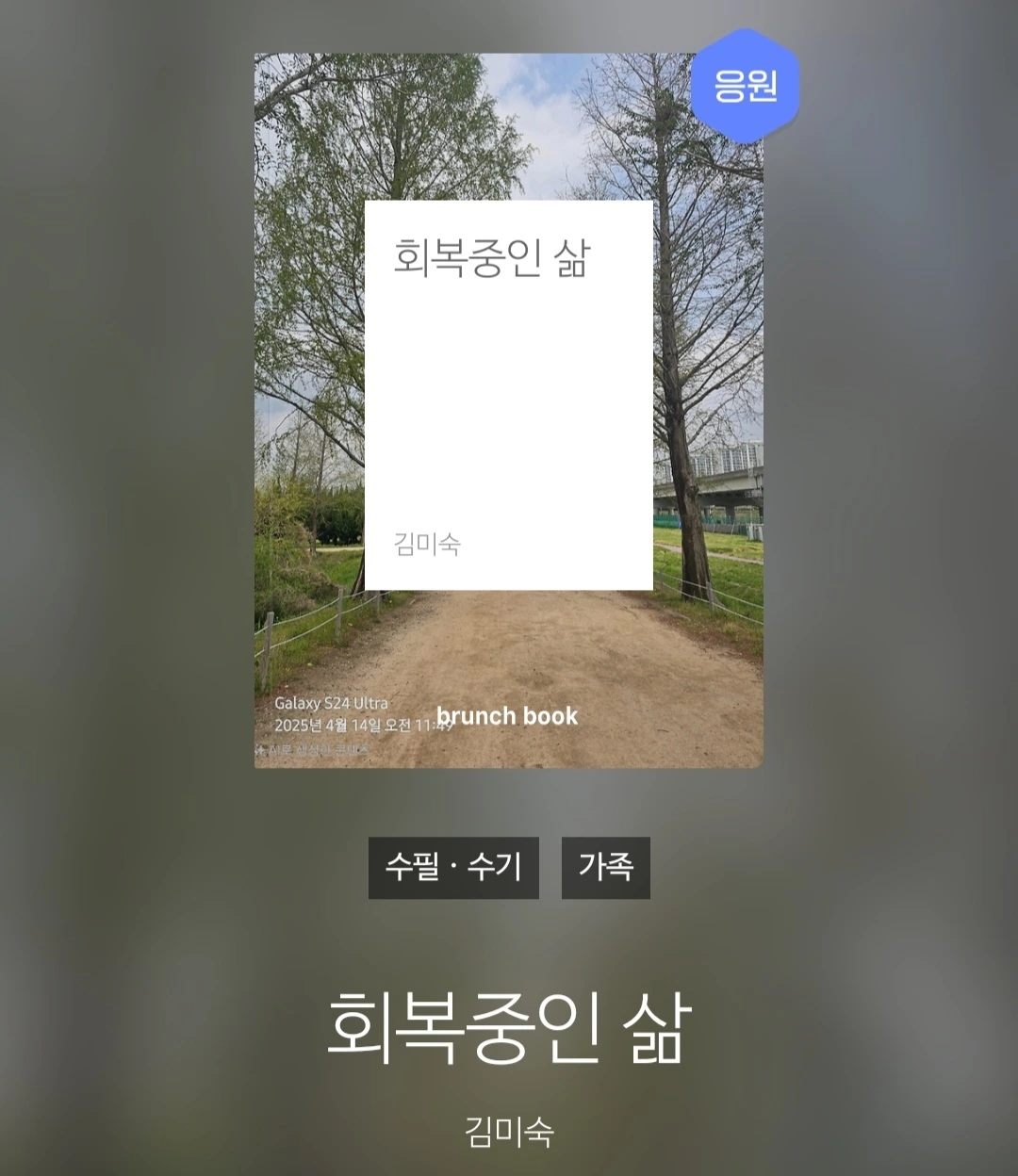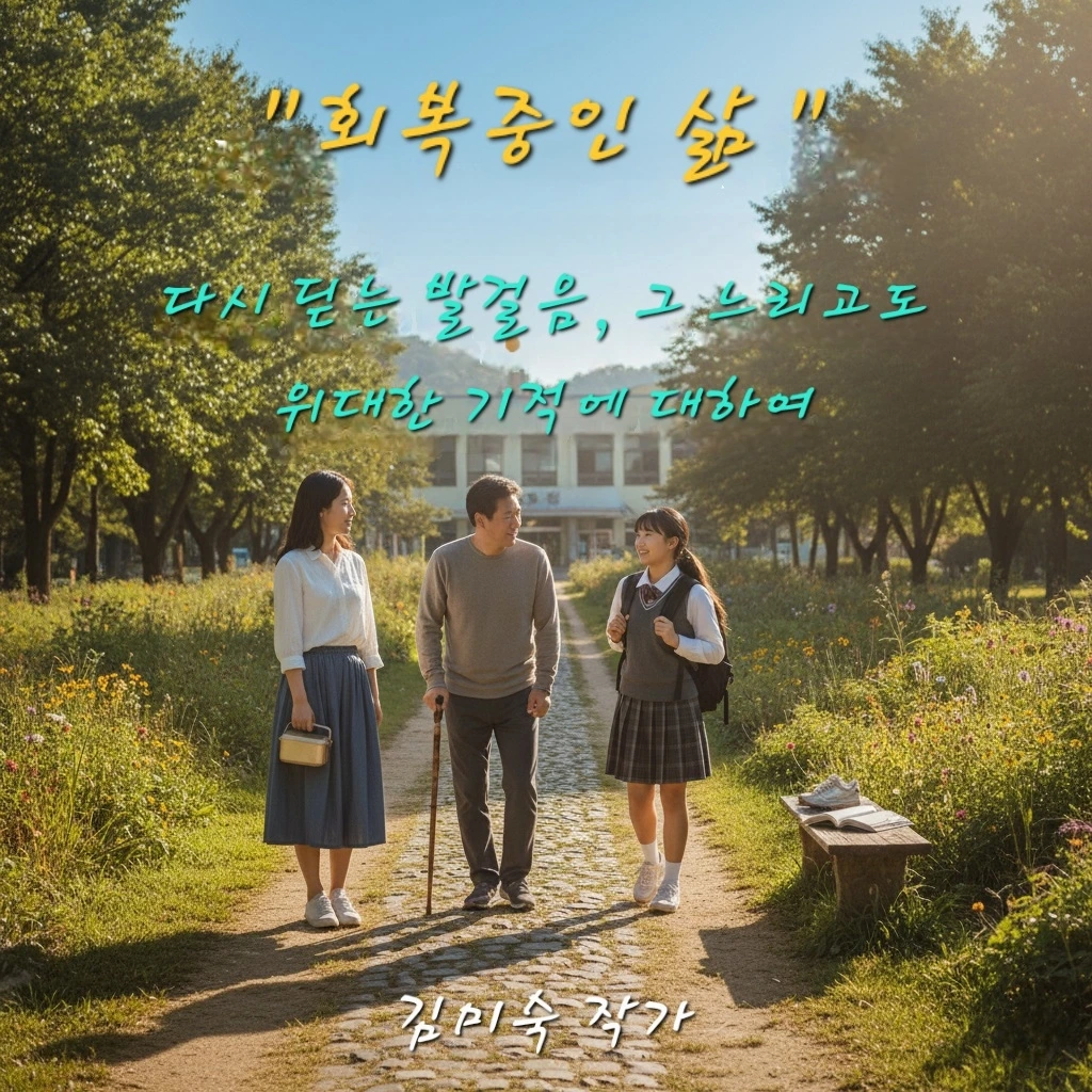 김미숙 작가님의 <회복 중인 삶> 은 단순한 투병기를 넘어, 무너진 일상의 파편을 하나씩 주워 담아 다시 ‘삶’이라는 지도를 그려나가는 숭고한 여정입니다. 21편의 소중한 기록들을 바탕으로, 감상문을 작성해 보았습니다.