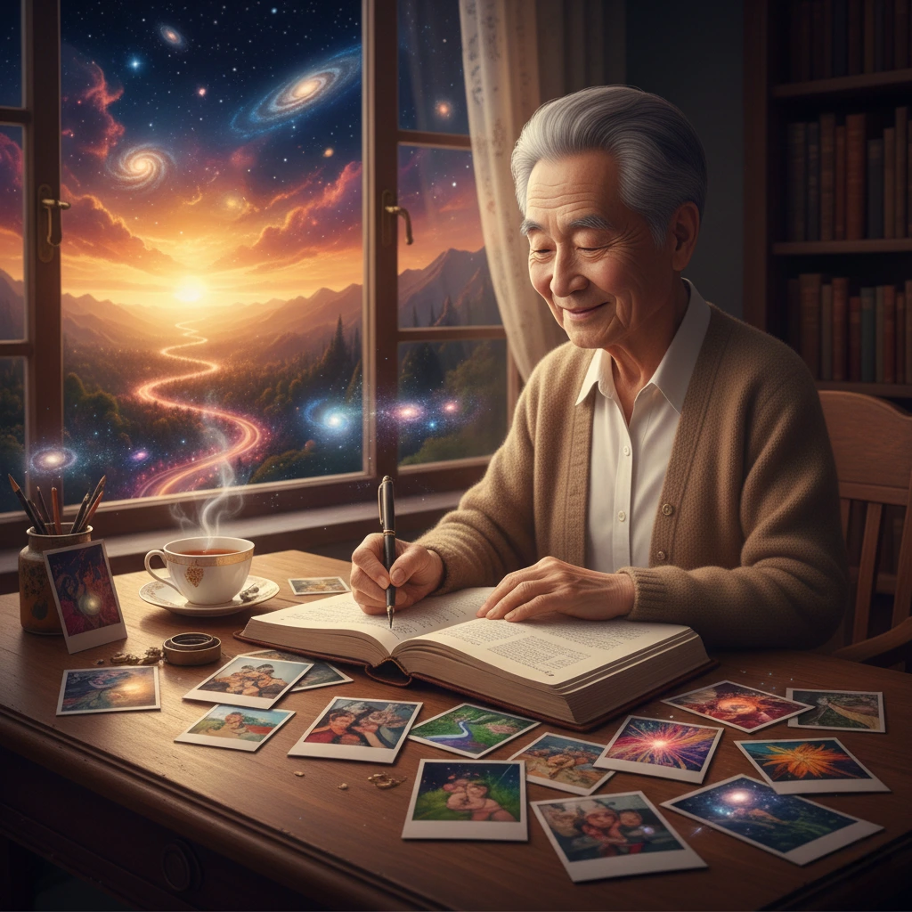 "기억은 우주의 별처럼 생성과 소멸을 반복하나, 문장은 그 모든 찰나를 이어 붙여 영원히 빛나는 은하수를 이룬다. 사라지는 빛 속에서도 우리는 새로운 길을 발견하고, 매 순간 우주를 새로이 창조한다."