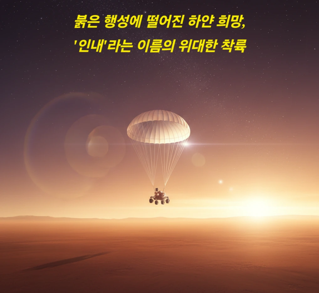 시간이 멈춘 듯한 그 고요한 대지 위로, 인류의 최첨단 기술이 '인내(Perseverance)'라는 이름을 달고 내려앉습니다.
