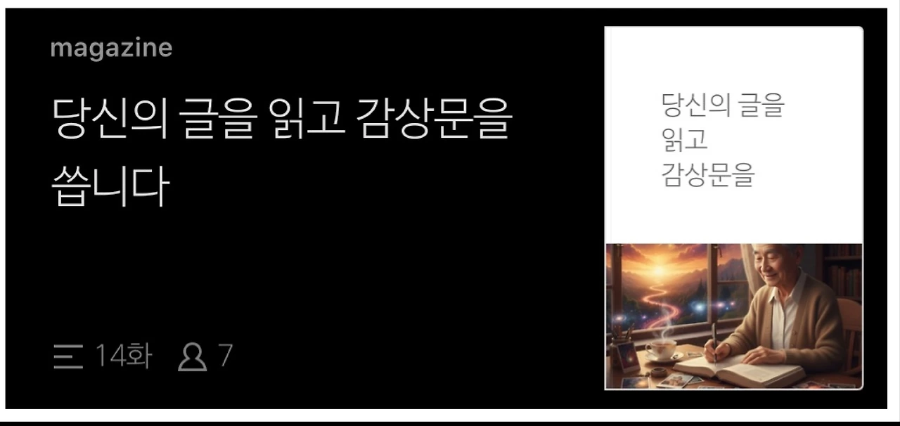 제 글에 소중한 발자국(라이킷이나 댓글)을 남겨주시는 작가님들의 공간에 자주 머물곤 합니다. 어느 날, 예고 없이 작가님의 글이 제 마음을 타고 흘러 이곳에 따뜻한 감상문으로 배달될지도 모릅니다. 그 기분 좋은 우연을 기쁘게 기다려주세요.