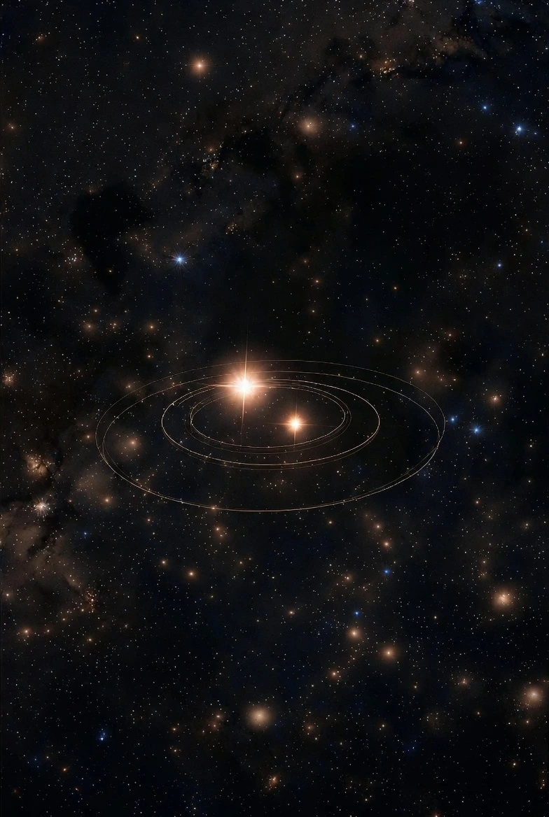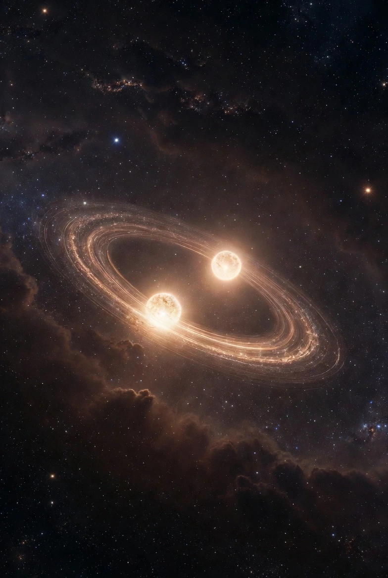 시작도 끝도 없이 서로를 중심으로 삼아 끝없이 순환하는 궤도. 두 별은 수억 년 동안 그 둥근 길 위를 산책했습니다.