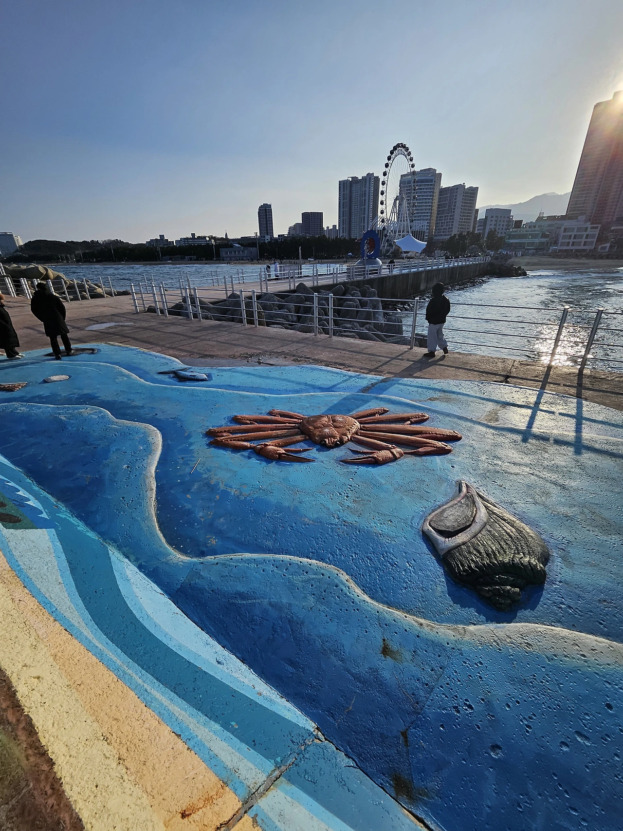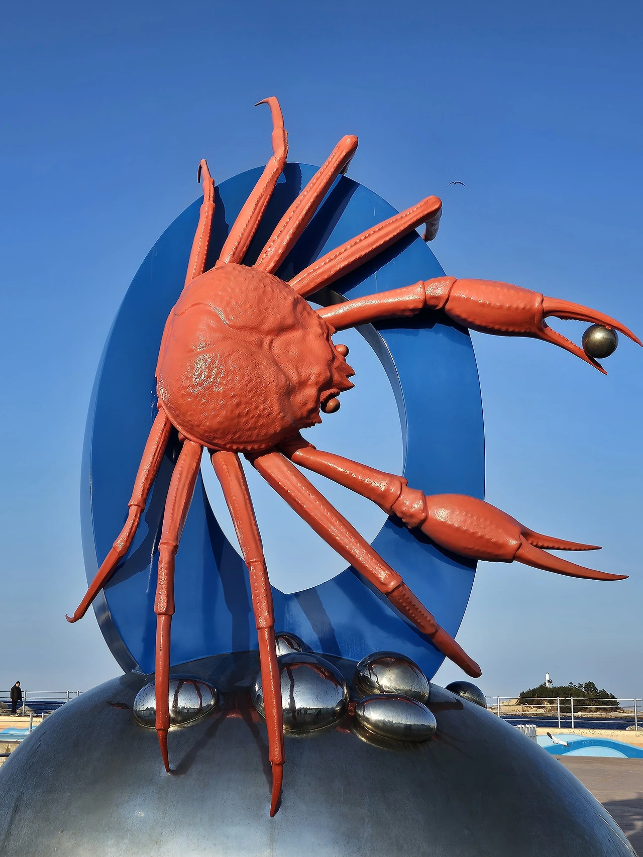 집게발을 번쩍 든 붉은 대게 조형물을 봅니다.