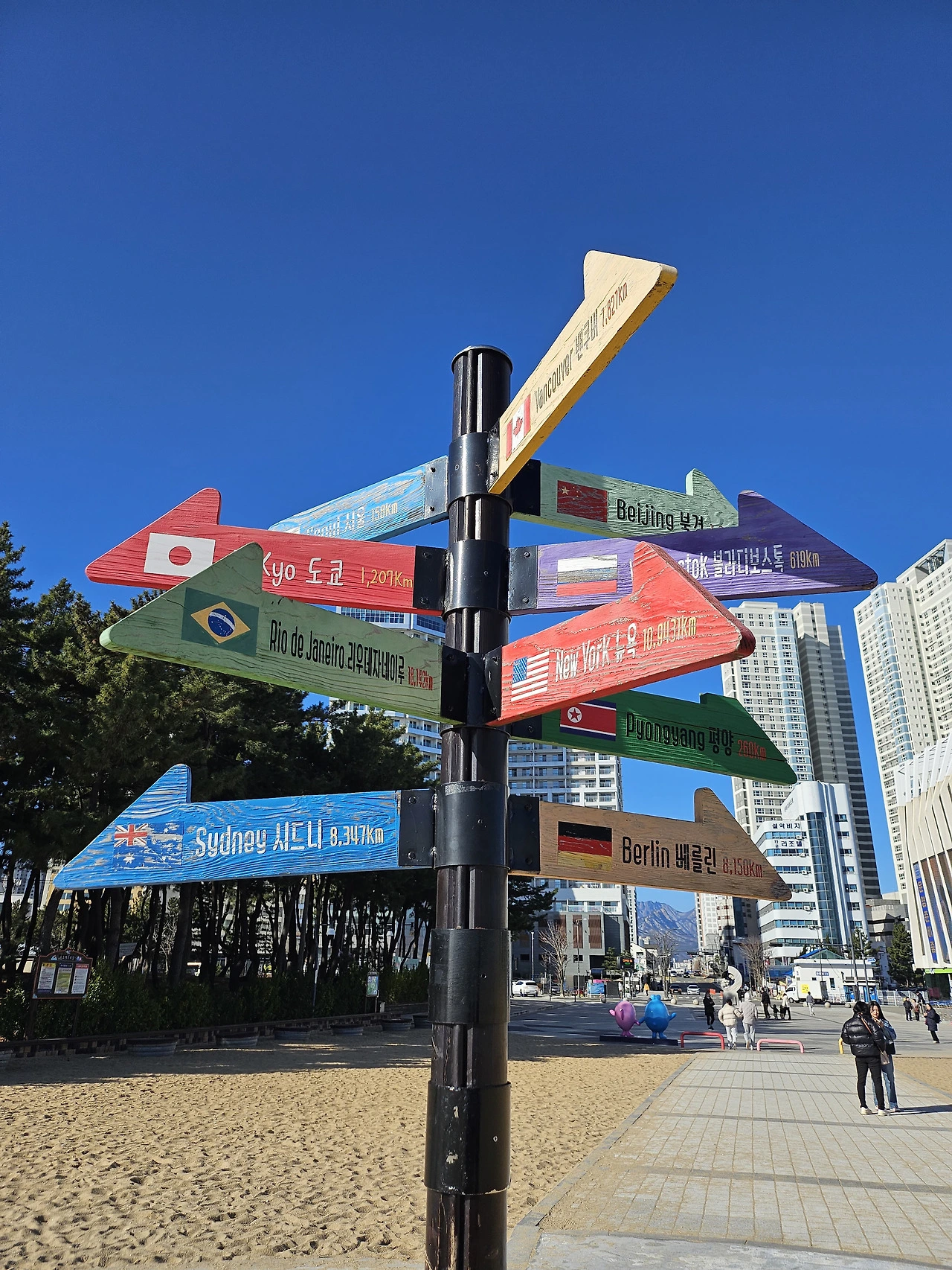 이정표는 도쿄와 뉴욕, 시드니를 가리키고
