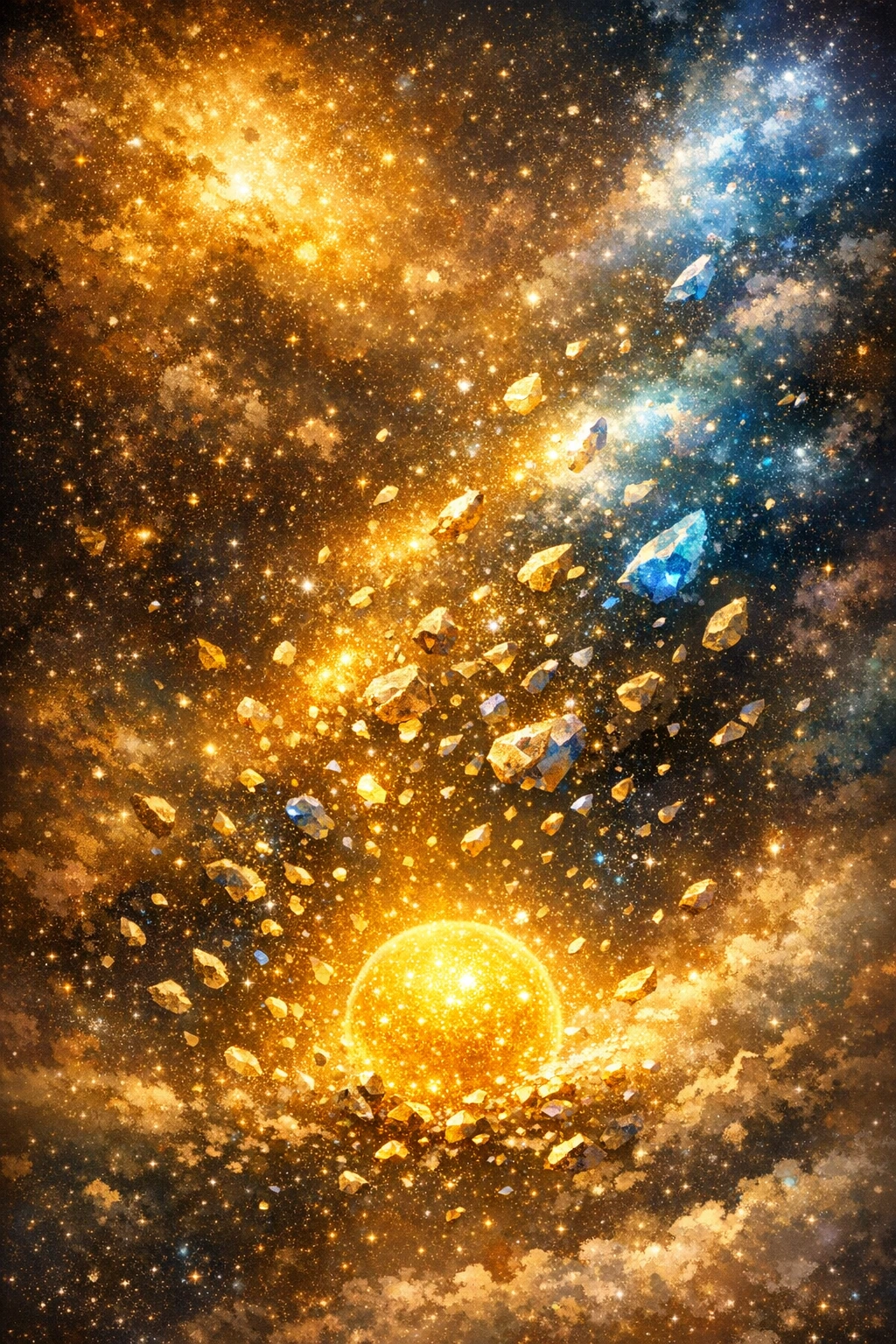 별의 심장 깊숙한 곳에서 만들어진 철과 규소들은 이제 단단한 약속이 되어 작은 별의 궤도 주변을 맴돌았습니다.