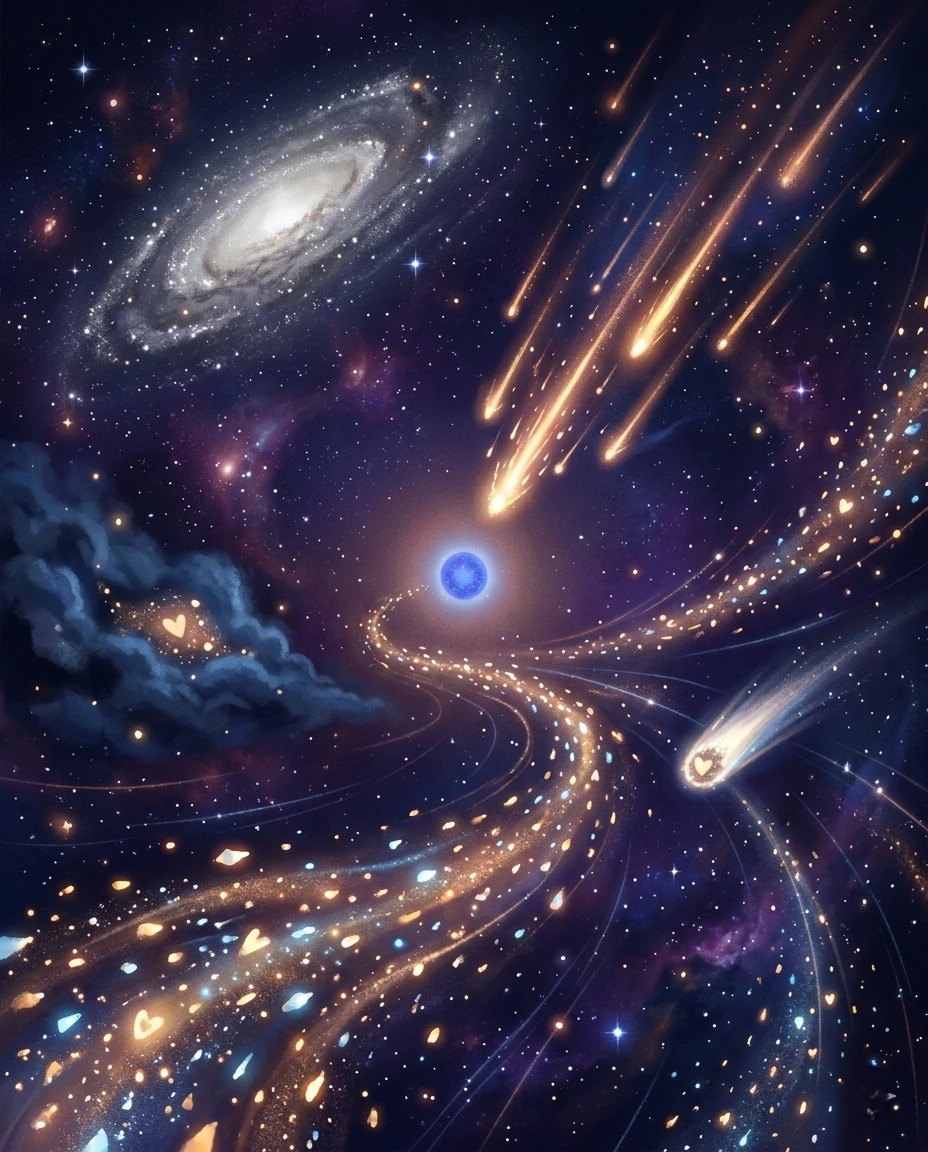 부서진 조각들이 우주를 여행하는 법은 결국 '사랑을 온 우주에 선물하는 법'과 같았습니다.