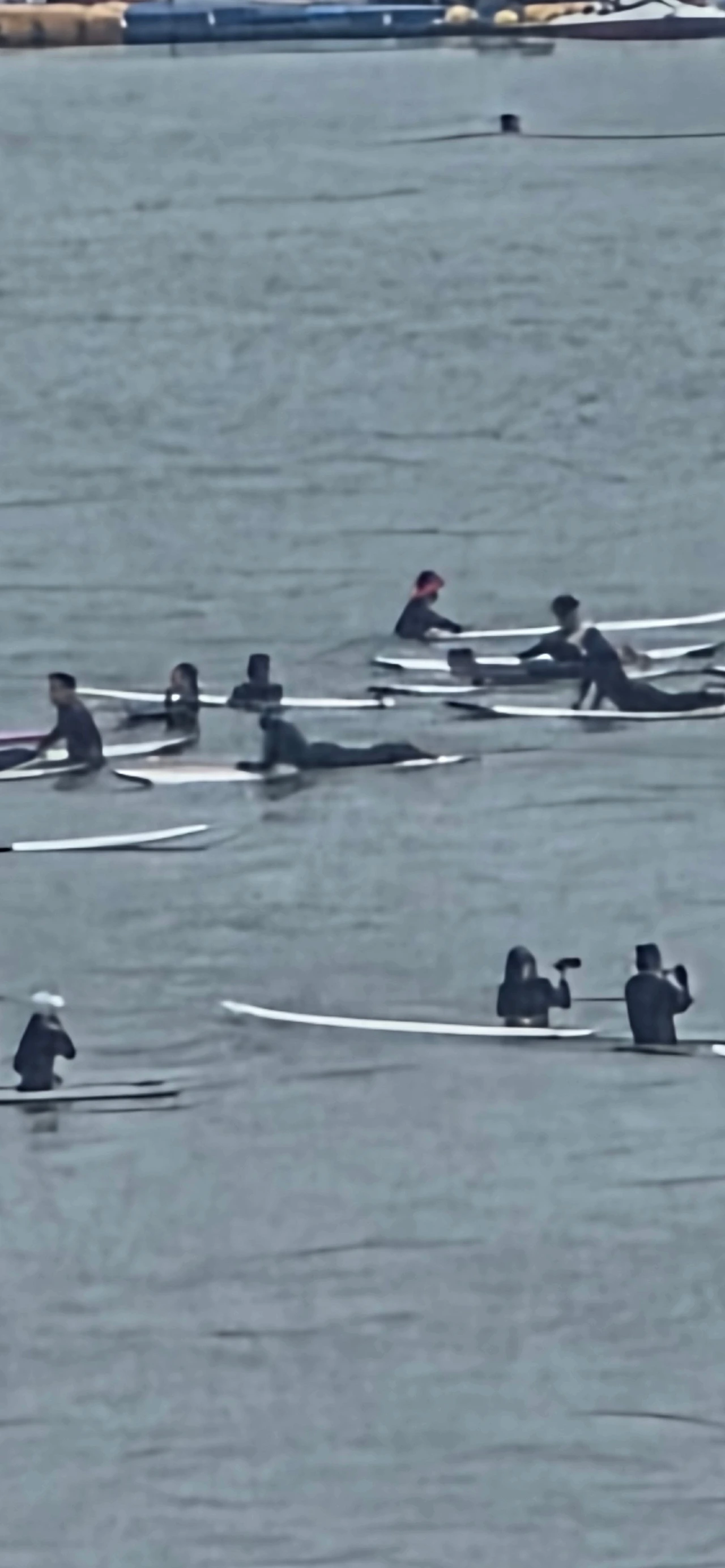 잔잔한 파도 위로 몸을 맡긴 채, 서핑보드 위에 엎드려 있는 모습은 마치 바다사자들이 한가롭게 일광욕을 하는 것 같았다.