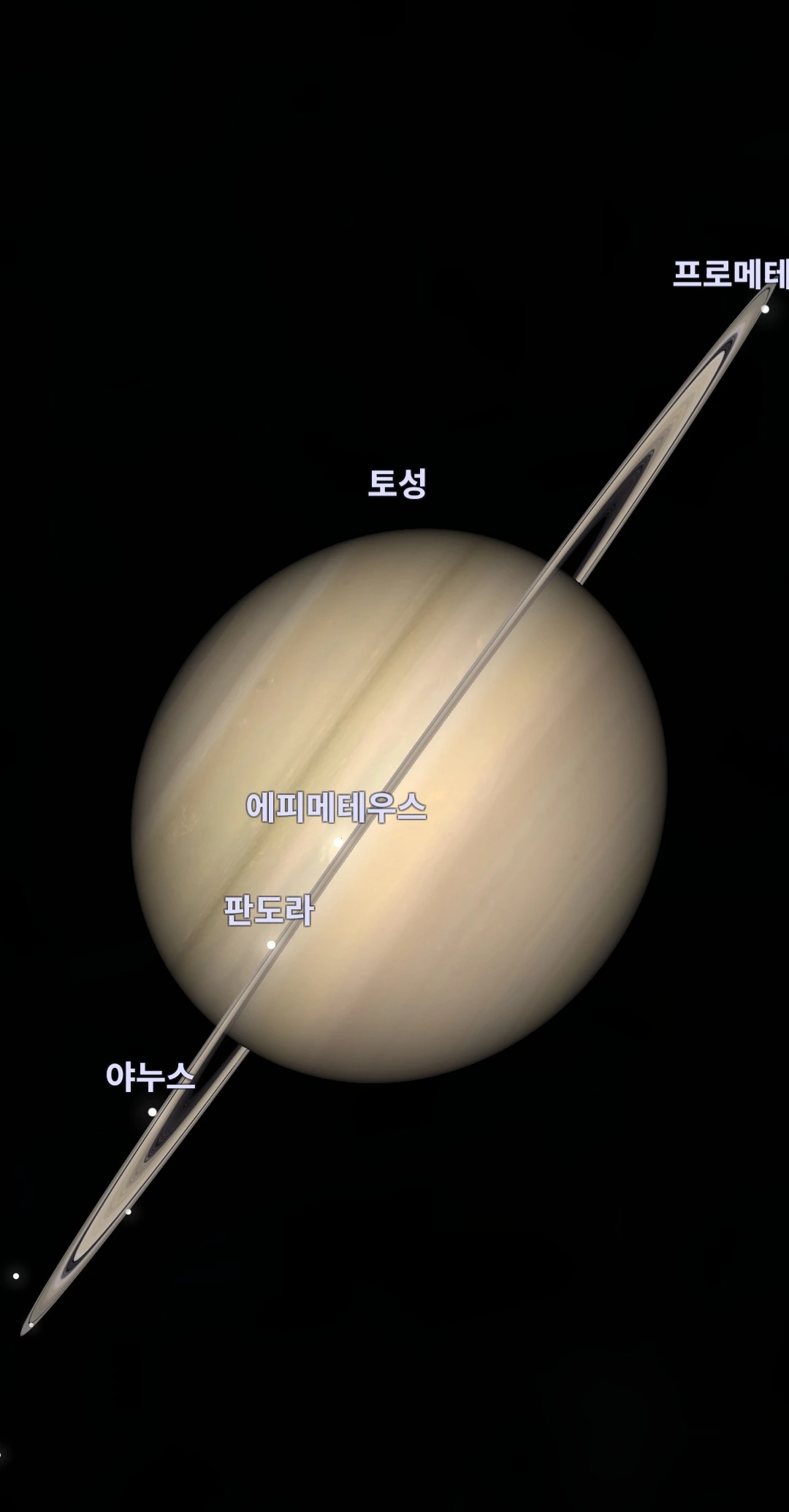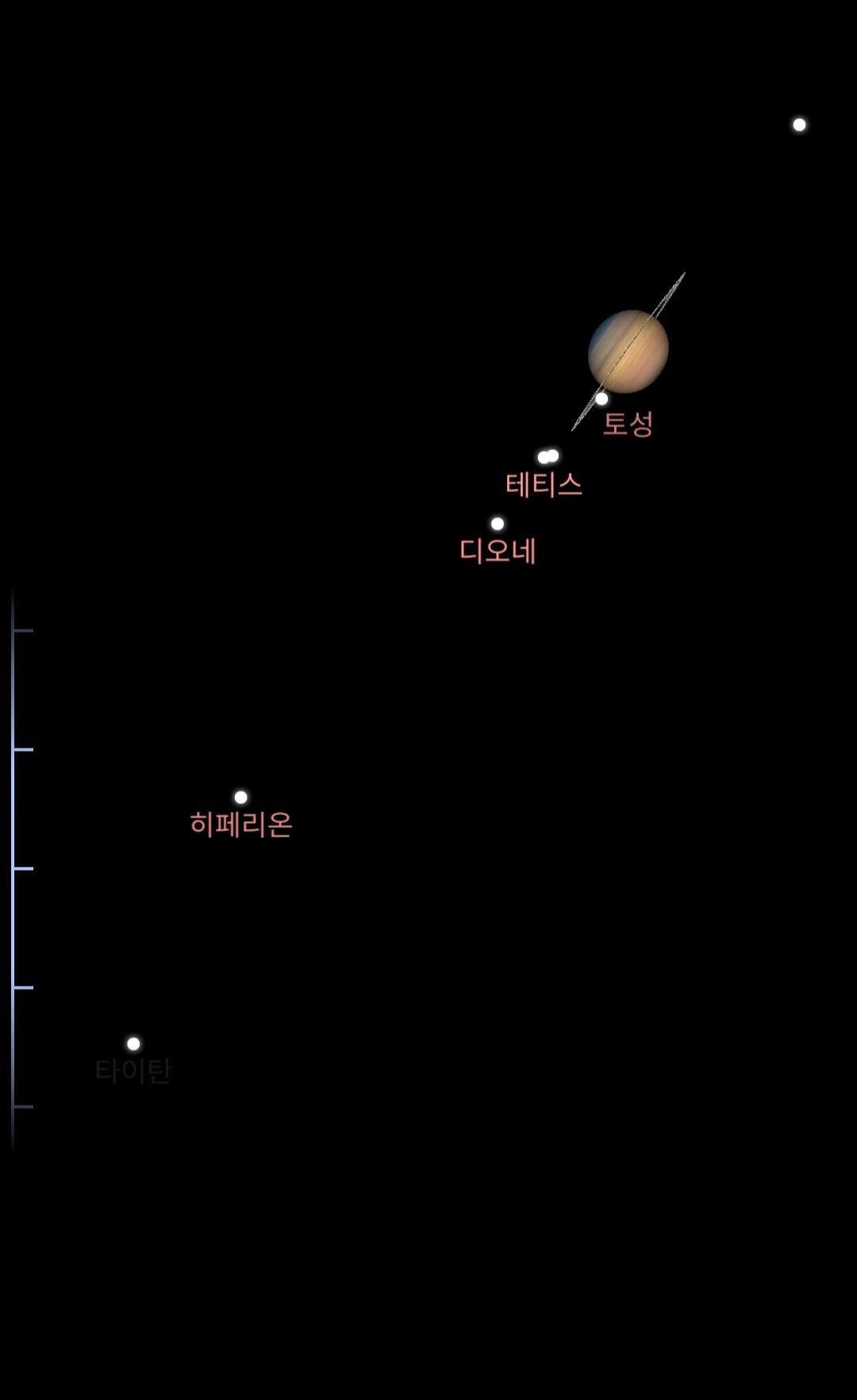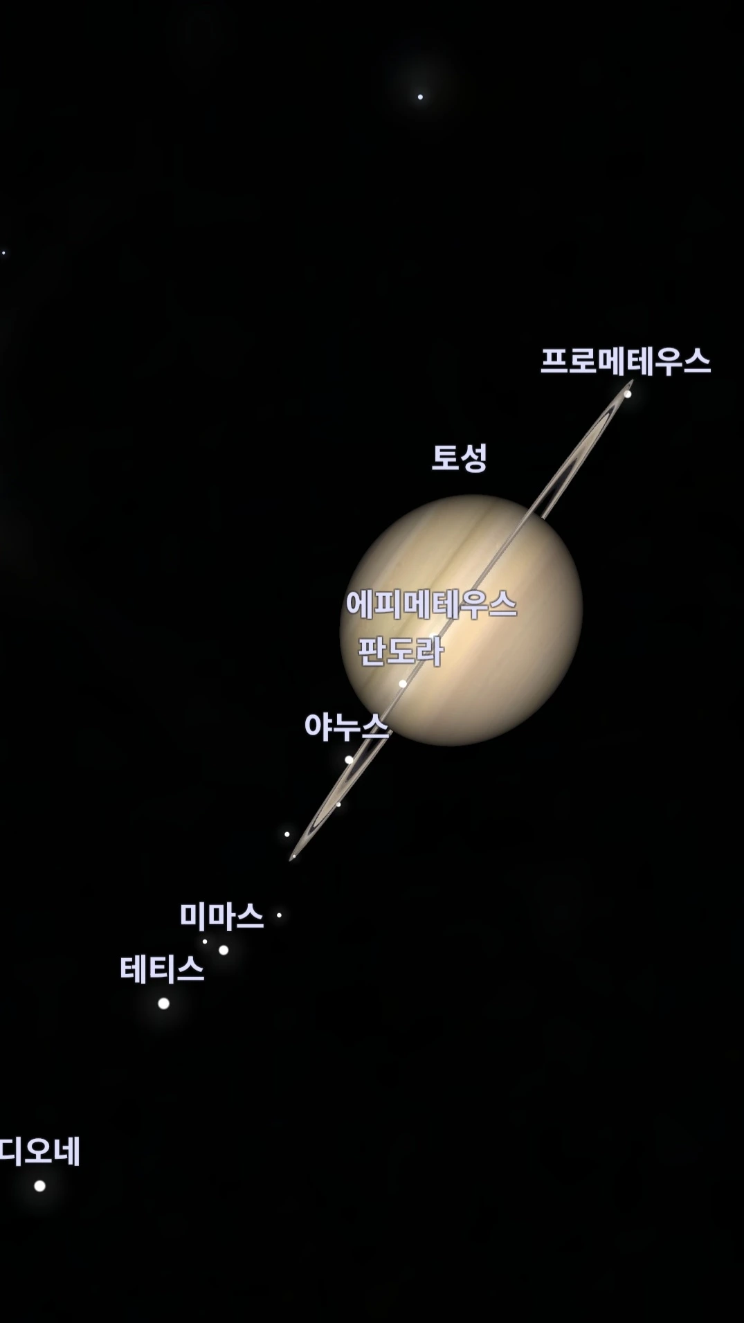 사진 속 타이탄, 레아, 디오네, 테티스와 같은 이름들은 마치 멀리 떨어져 사는 친척들의 이름처럼 정겹게 느껴졌습니다.