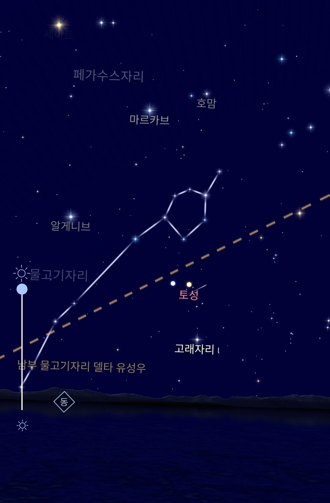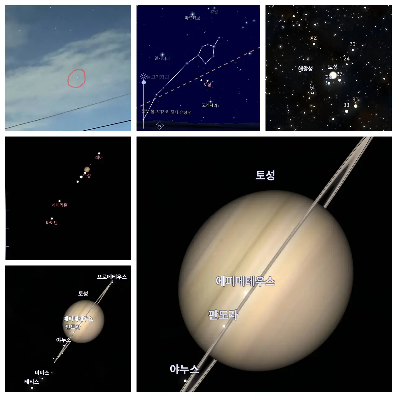 사진 속에서 작게 빛나던 그 점이, 별자리 그림에서는 물고기자리 옆에서 조용히 빛나는 토성으로 나타났습니다.
