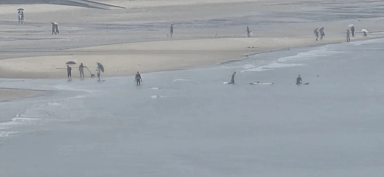 사람들 역시 그러하다. 우산을 받치고, 혹은 그저 빗물을 맞으며 해변을 거닐고, 물놀이를 즐기는 모습은 마치 우리네 인생의 축소판 같다. 비라는 예상치 못한 변수에도 불구하고, 각자 자기만의 방식으로 오늘을 채워나가는 사람들.