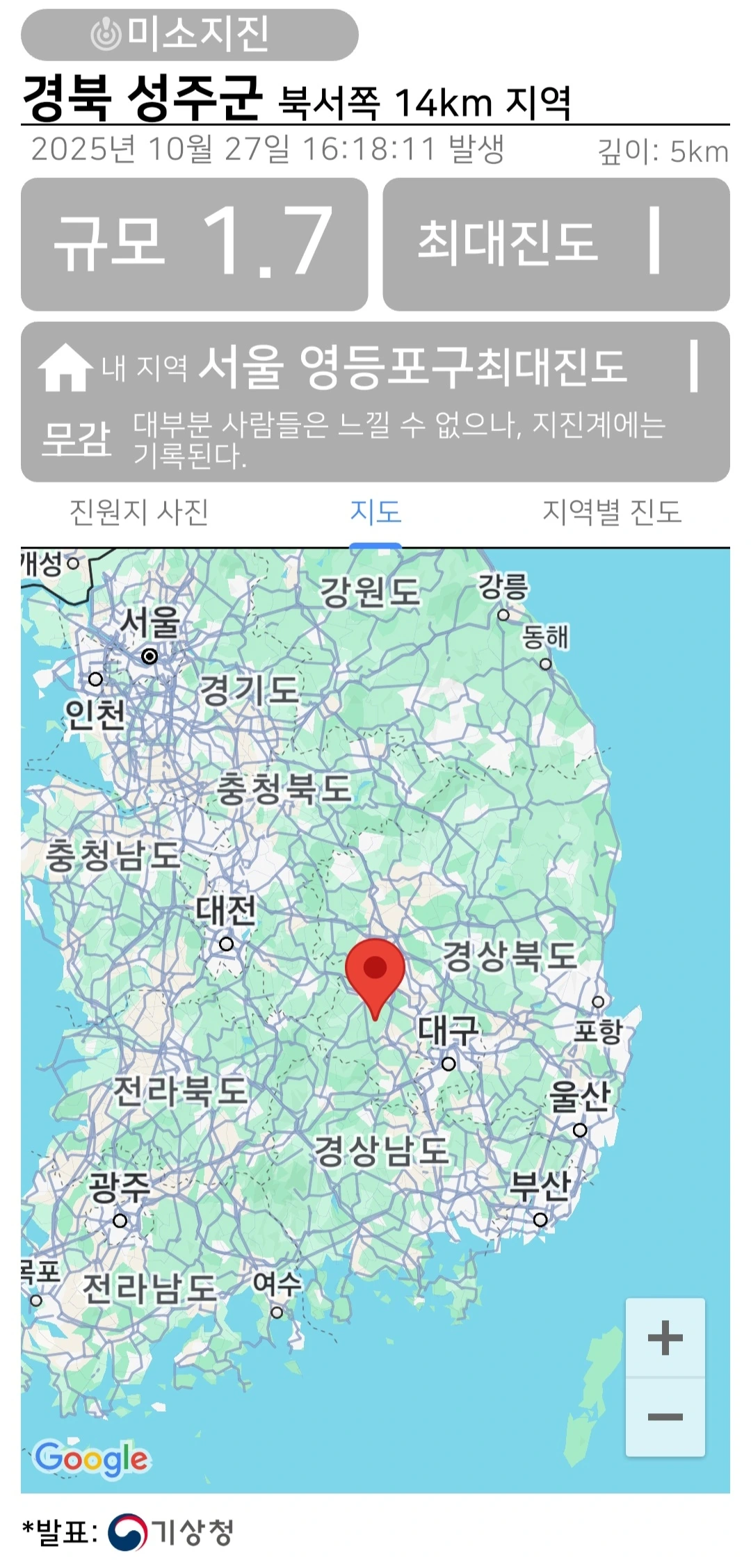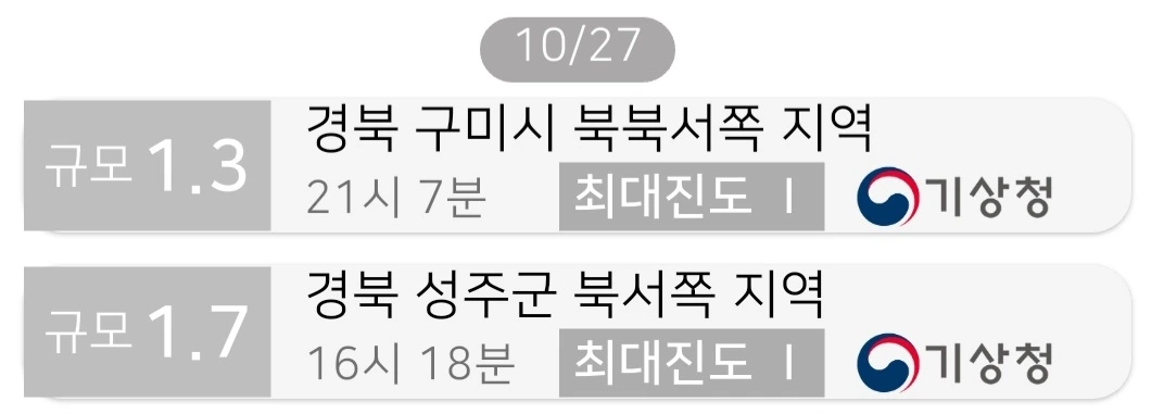 #미소지진 #경북구미지진 #성주지진 #우리나라지진 #규모1.3 #일상속지진