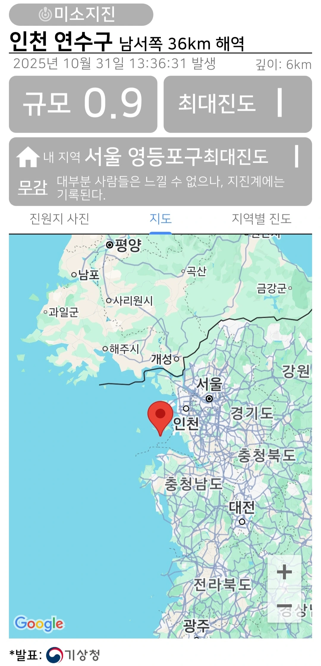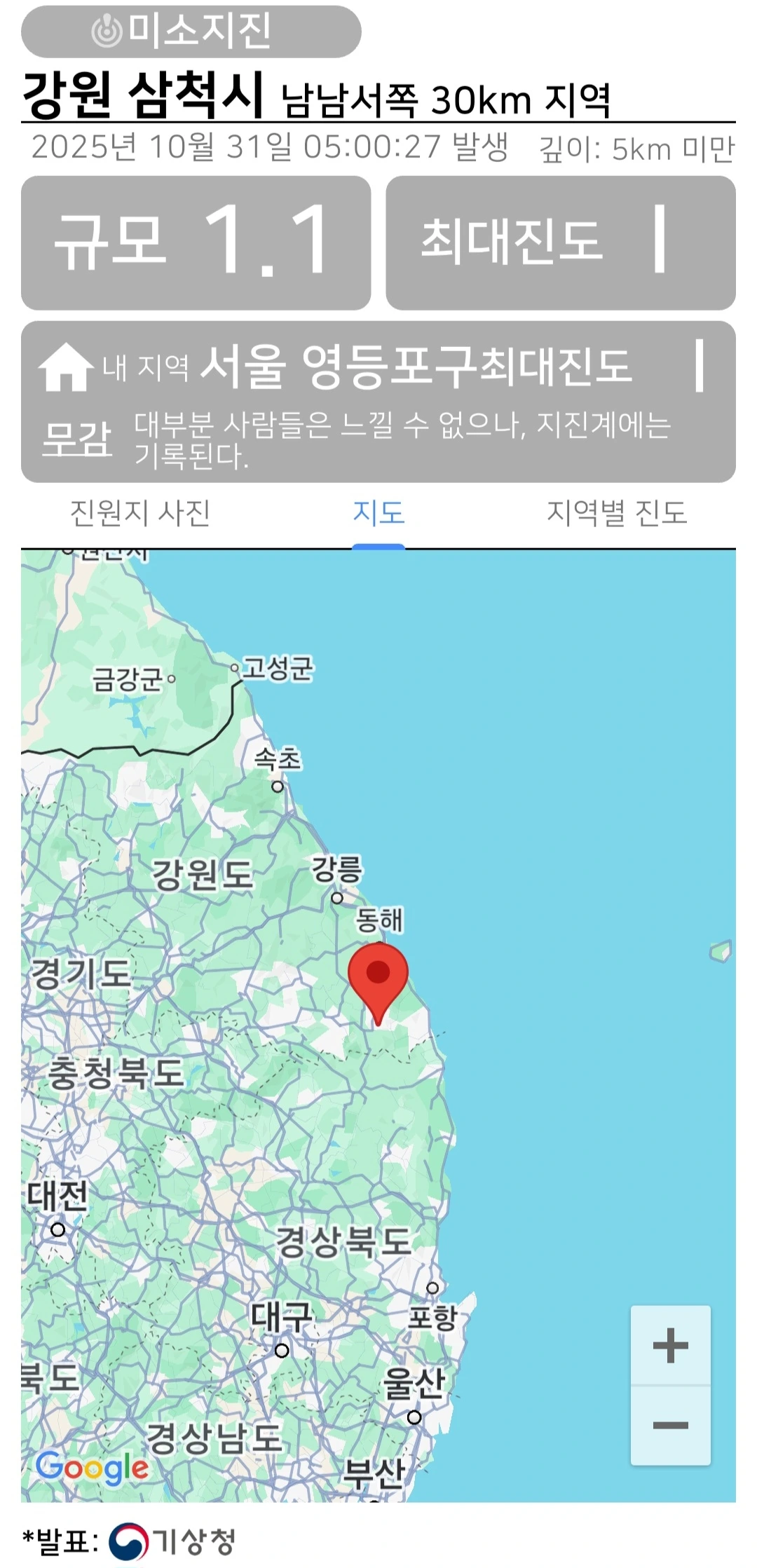 삼척을 포함한 동해 해역과 인천 연수구 해역(서해)도 크고 작은 해역 지진의 기록이 있습니다.