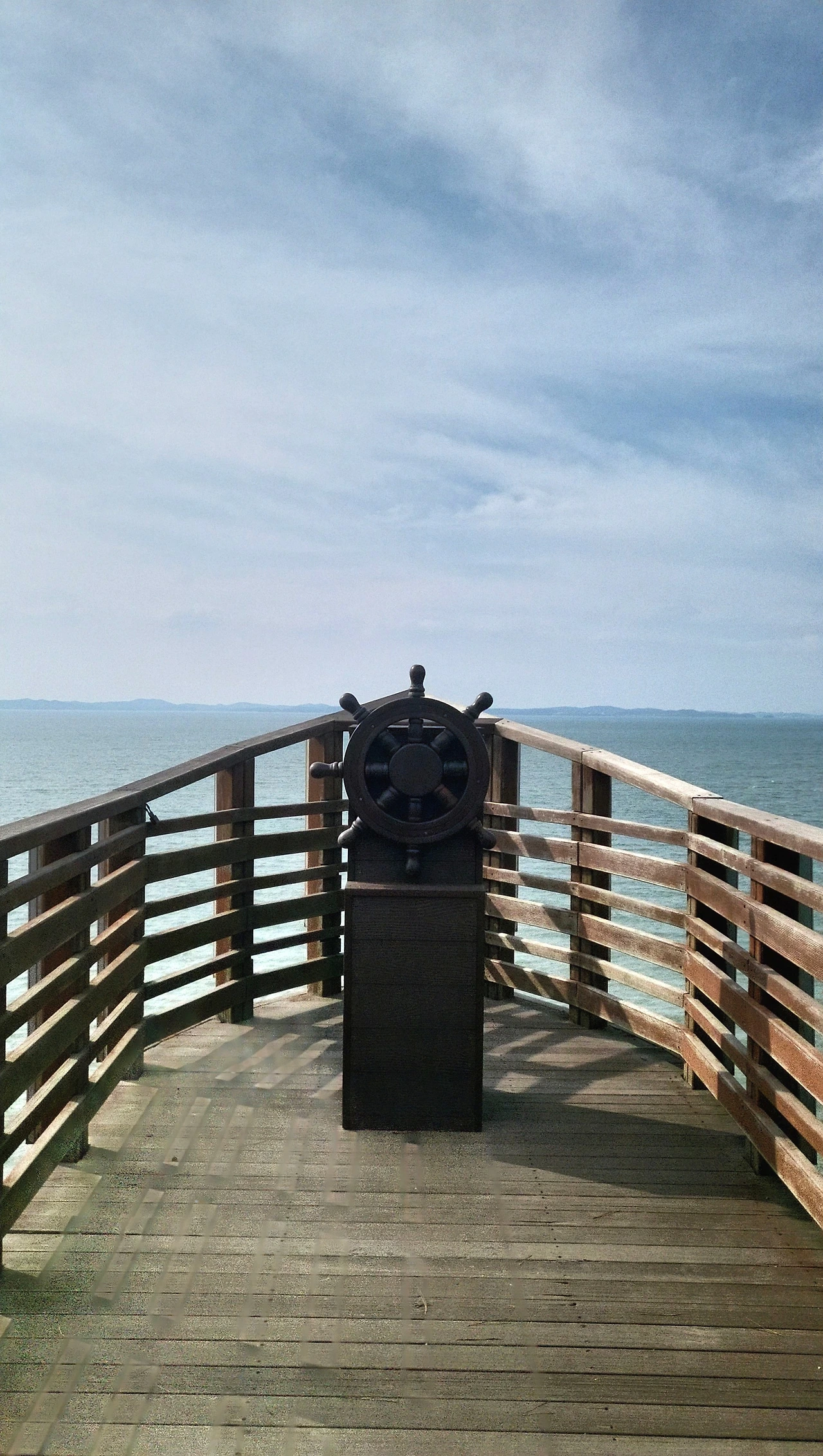 그 수평선은 우리가 나아가야 할 미지의 목표이자, 동시에 삶의 끝없는 가능성이다. 선박의 키(Ship's Wheel) 조형물은 잠시 멈춘 이 쉼터에서 우리 자신에게 묻는다.