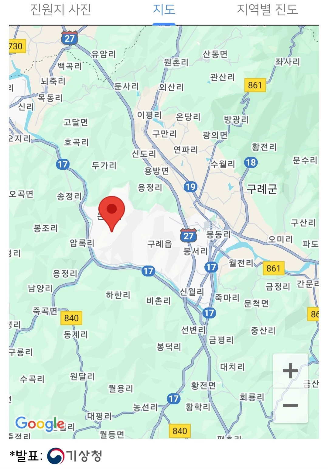 지진이 발생한 구례군 지역은 2017년 5월 규모 3.0의 지진이 발생했던 기록이 있습니다.