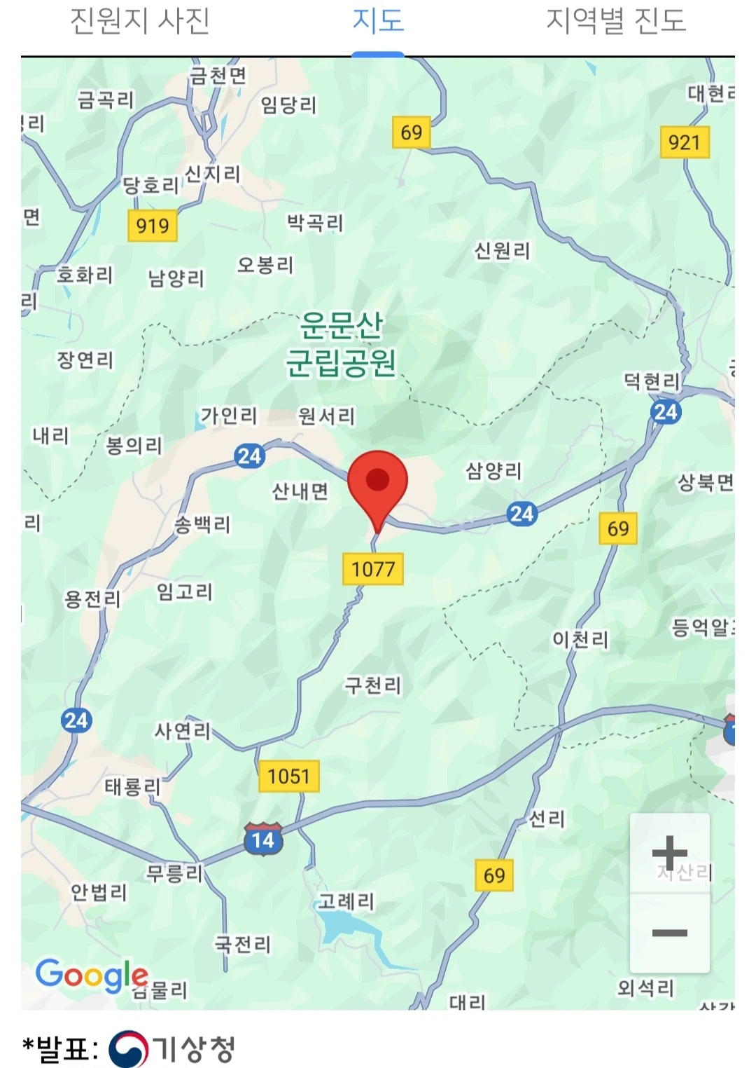비교적 최근인 2024년 4월에도 규모 1.5 지진이 발생했었죠.