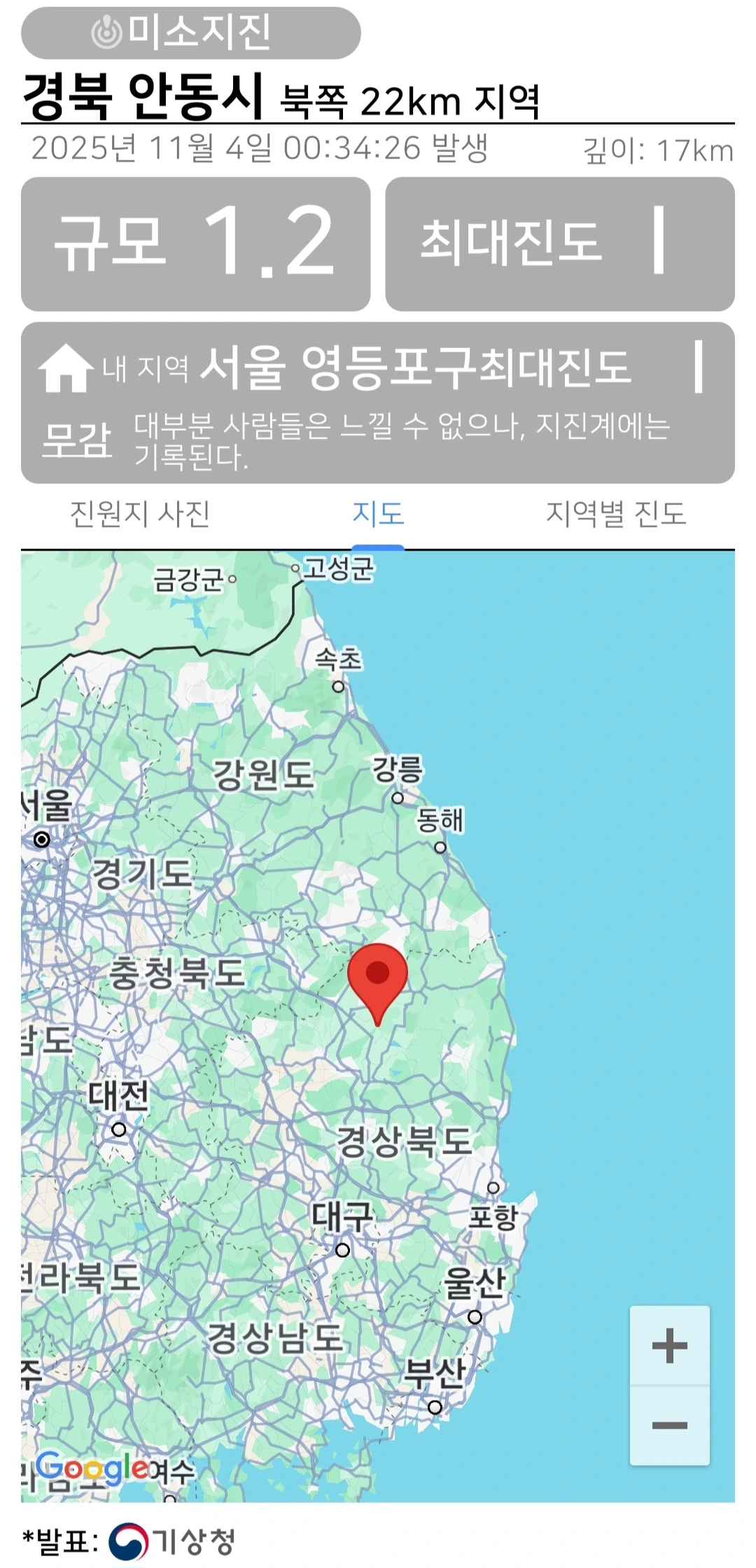 특히 안동의 특정 지역(도산면 일대)에서는 최근까지도 지진이 비교적 집중되는 양상까지 보이고 있습니다.