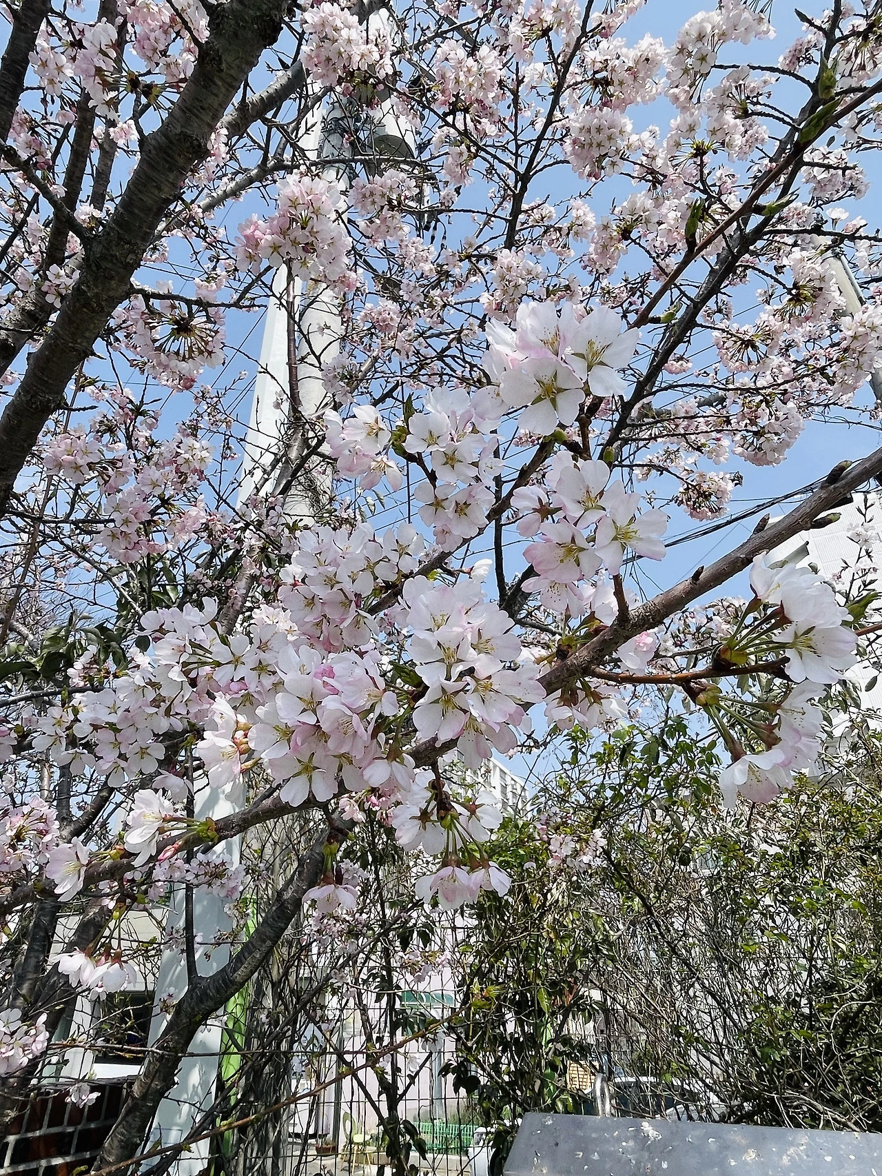 심지어 나의 집 주차장에도 벚꽃나무 한그루가 있는데, 봄에 가장 먼저 발을 내딛기 위해 벌써 혼자 활짝 피고 있었다.