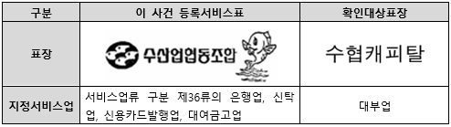 이 사건 등록서비스표는 물고기 형상의 도형에서 어떠한 호칭이 도출된다고 보기 어려우므로 요부인 한글문자에 의하여 ‘수산업협동조합’이라고 호칭된다 할 것이다. 확인대상표장은 ‘수협캐피탈’이라고 전체로 호칭되거나 ‘캐피탈’이 사용서비스업인 ‘대부업’과 관련하여 일반적으로 널리 사용되는 명칭이어서 식별력이 없으므 로 ‘수협’이라고 약칭될 수 있다 할 것이다.