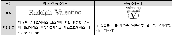 이 사건 등록상표는 “Rudolph Valentino”와 같이 영문자의 결합으로 구성된 상표로서, “Rudolph” 부분과 “Valentino” 부분이 일련 불가분적으로 결합되어 있다거나 그 결합에 의하여 새로운 관념을 낳는 것으로 볼 수는 없고, 그 중 “Valentino” 부분이 국내 일반 수요자나 거래자들에게 곧바로 이탈리아의 흔한 성(姓)으로 인식되어 식별력이 없거나 약하다고 볼 수는 없으므로, 이 사건 등록상표는 “Rudolph” 부분과 “Valentino” 부분으로 분리되어 관찰될 수 있다고 할 것이고, 한편 선등록상표 1은 영문자 “valentino garavani”와 “V”를 포함하는 도형의 상하 결합으로 구성된 상표로서 문자 부분과 도형 부분으로 분리 관찰될 수 있고, 위 문자 부분은 다시 “valentino”와 “garavani”가 일체 불가분적으로 결합되었다고 볼 수 없어 각각의 부분만으로 분리되어 관찰될 수 있다고 할 것인바, 만일 이 사건 등록상표와 선등록상표 1이 각각 “Valentino” 및 “valentino” 부분으로 분리 관찰되어 “발렌티노”만으로 간략히 호칭∙관념될 경우, 양 상표는 그 호칭 및 관념이 동일하므로, 전체적인 표장이 서로 유사하다고 할 것이다.