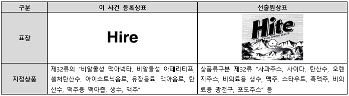 이 사건 등록상표는 “하이어”로 호칭될 것임에 비하여, 선출원상표는 아래에서 보는 그 알려진 정도 등에 비추어 문자부분인 “하이트”로 호칭될 것이므로 호칭에 있어서도 서로 같거나 유사하다고 보기는 어렵다 할 것이다.