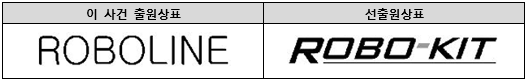 이 사건 출원상표는 영문자 “ROBOLINE”과 같이 대문자로 이루어진 하나의 문자상표인 데 비하여, 선출원상표는 영문자 ‘ROBO’와 ‘KIT’를 하이픈(-)으로 연결하되 영문자 ‘R’을 조금 더 크게 하고 나머지 부분은 밑줄을 그어 ‘R’ 부분과 크기를 맞춘 결합상표로서 양 상표의 외관은 상당히 다르다.