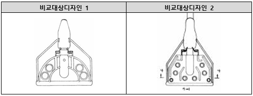 그러나 비교대상디자인들의 각 도면(비교대상디자인 1의 정면도, 비교대상디자인 2의 평면도)에서 보는 바와 같이 비교대상디자인들에도 고정판의 중앙부분에 마포걸레 자루가 끼워질 수 있도록 볼록한 형상의 끼움봉이 형성되어 있고, 고정판의 테두리에 두 줄의 보강 띠가 형성되어 있으며, 고정판에 여러 개의 구멍이 서로 대칭되도록 형성되어 있고, 고정판의 밑면에 고정레버가 형성되어 있으며, 끼움봉의 위쪽에 작동대가 설치되어 있고, 작동대의 중간부분과 고정레버의 양끝을 연결하는 결착대가 형성되어 있어서, 이 사건 등록디자인과 확인대상디자인의 위와 같은 유사점은 그 중요도를 낮게 평가하여야 할 것이다.