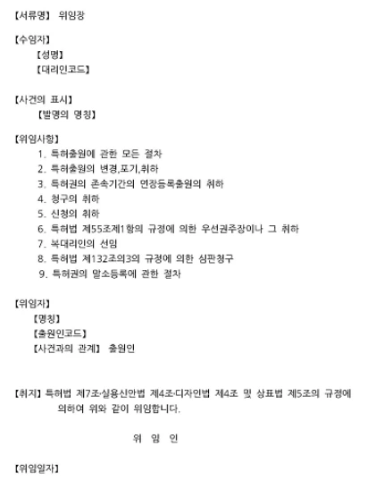 대리인을 통해 진행할 경우, 해당 서류는 대리인이 작성하게 됩니다. 이 경우 대리인 선임을 위하여 포괄위임 절차가 선행되거나, 해당 사건에 대한 위임 내용이 기재된 위임자을 제출해야 합니다.