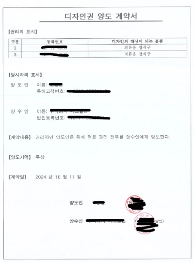 권리이전 절차를 진행하지 않으면 디자인권 소유자가 여전히 양도인으로 남아 있고, 실제로 권리를 넘겨받았다 하더라도 법적으로 디자인권자로 인정받지 못하게 됩니다.