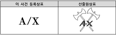이 사건 등록상표 “A/X”는 슬래쉬(/)를 사이에 두고 영문자 “A”와 “X”가 결합되어 구성된 기호와 문자의 결합상표이고, 선출원상표는 양날을 가진 도끼 두 개가 엇갈려 있는 도형의 중앙에 “AX”라는 문자를 배치하여 구성한 문자와 도형의 결합상표로서, 그 외관은 현저히 다르다.