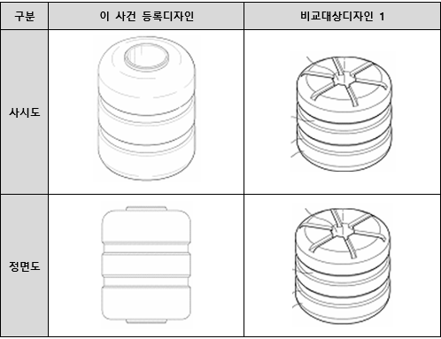 양 디자인은 전체적으로 상하 모서리가 만곡된 원기둥 형상인 점, 몸체 둘레에는 상하 2줄로 테두리 형태의 홈이 형성되어 있는 점, 중심부에는 지주를 삽입할 수 있도록 통공이 형성되어 있는 점 등의 지배적인 특징이 유사하다.
