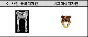 다만, 이 사건 등록디자인은 비교대상디자인과 대비하여 호랑이의 검정색 가로 줄 무늬의 모양과 코와 입의 형상 및 연장부분의 형상에서 다소 다른 점이 있지만, 이런 정도의 차이는 일반 수요자의 주의를 끌기 어려워 특별한 심미감을 일으키는 요소가 된다고 할 수 없고, 전체적으로도 양 디자인은 호랑이의 머리를 연상케 하면서 동물에 대한 친밀감을 느낄 수 있도록 하는 점에서 그 심미감이 동일하다.