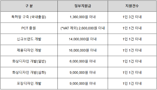 - IP(지식재산) 디딤돌 프로그램 권리화 지원 프로그램을 통해 출원한 특허기술만을 대상으로 지원 가능